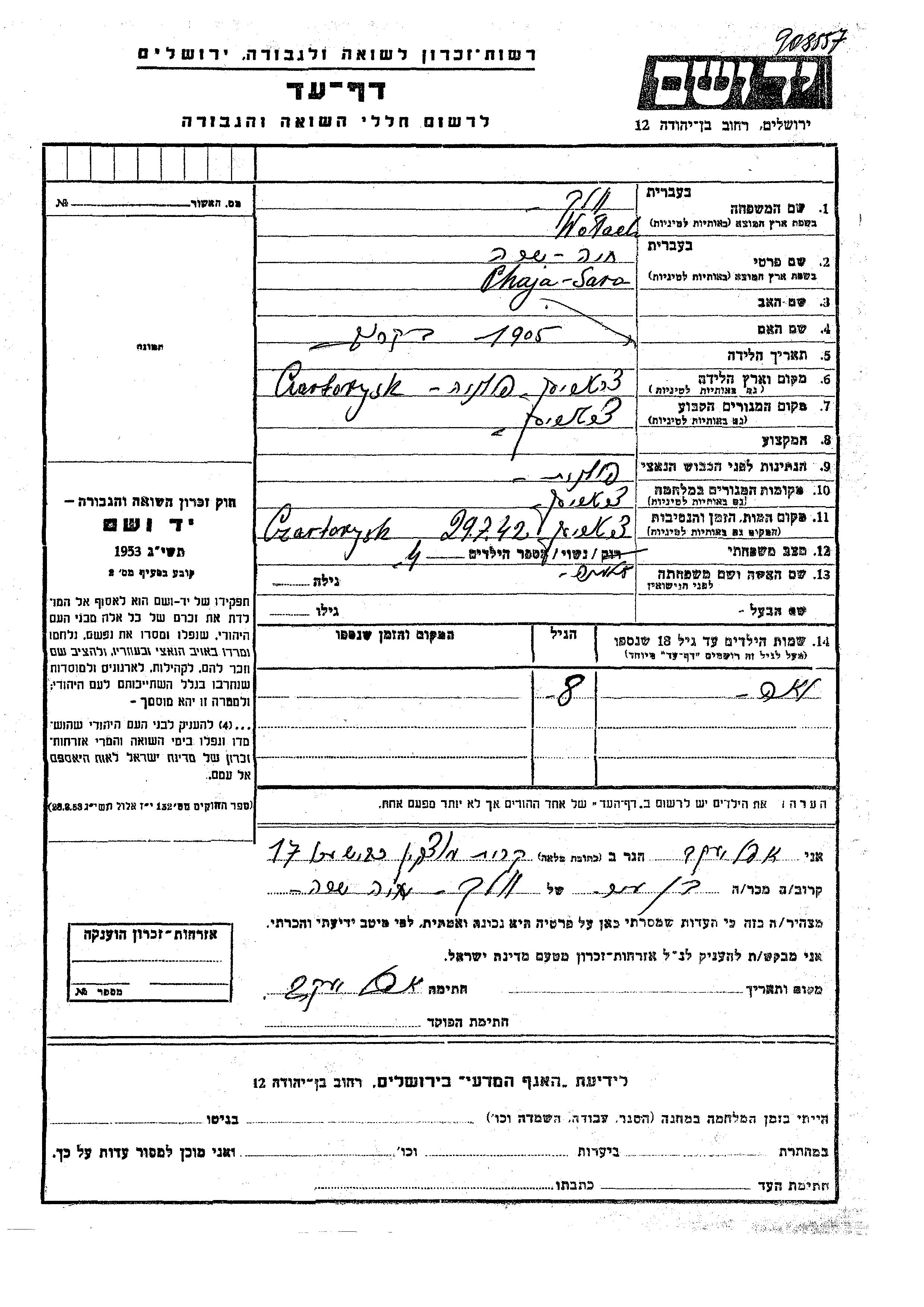 Yad Vashem - Pages of Testimony Names Memorial Collection