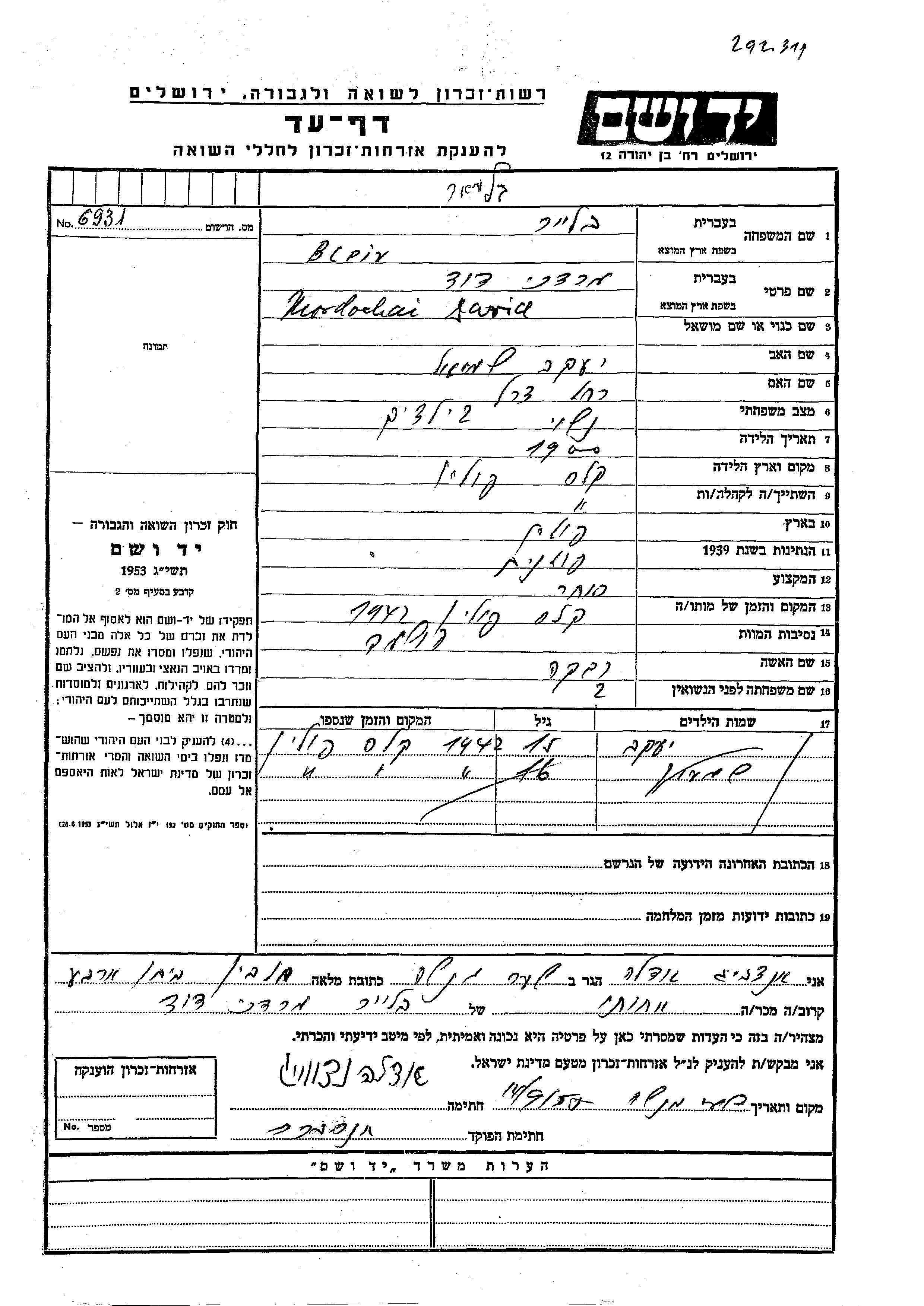 Yad Vashem - Pages of Testimony Names Memorial Collection