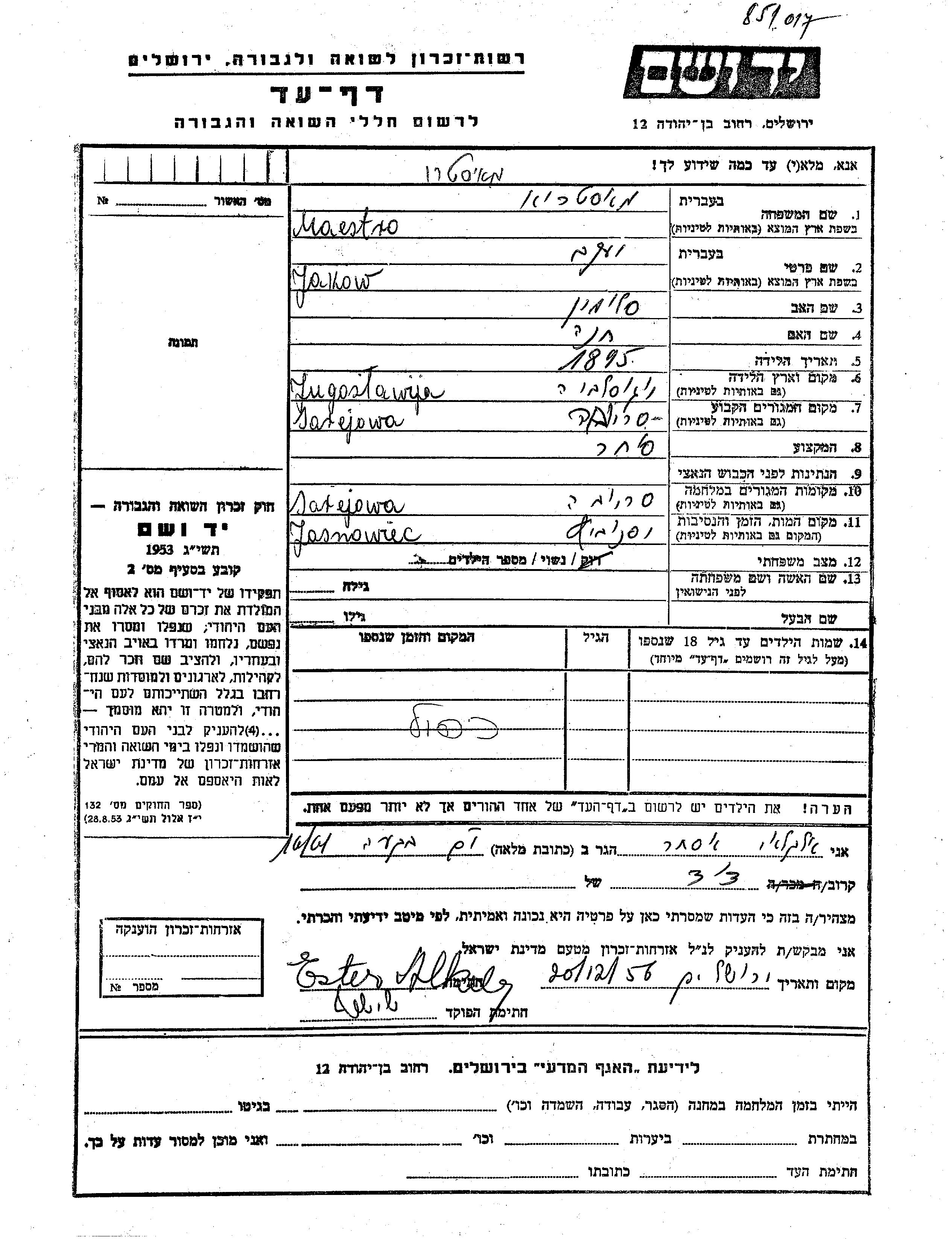 Yad Vashem - Pages of Testimony Names Memorial Collection