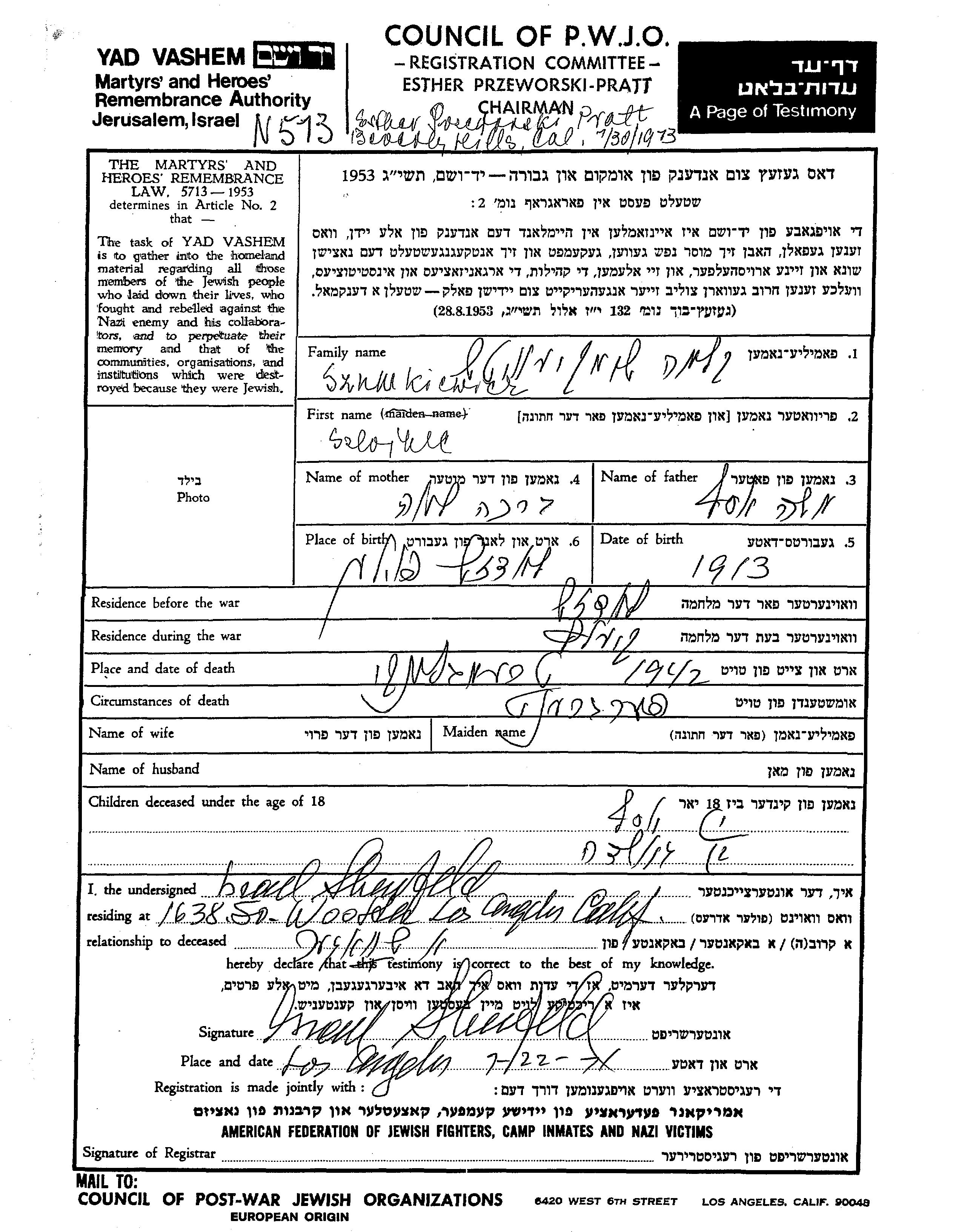 Yad Vashem - Pages of Testimony Names Memorial Collection