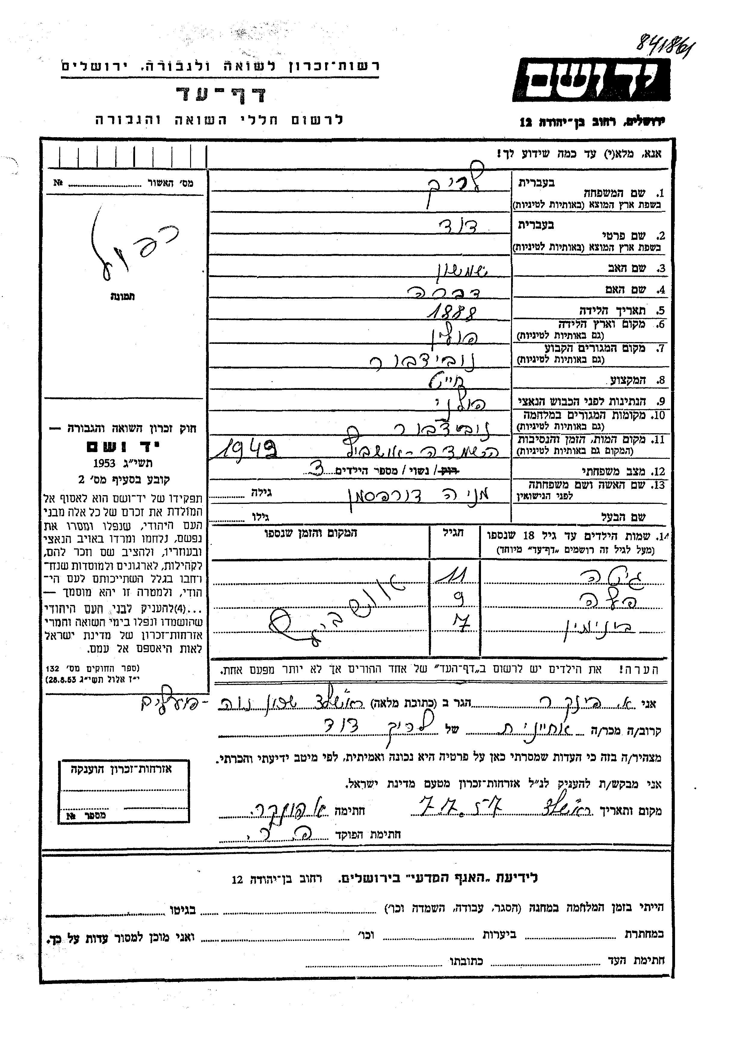 Yad Vashem - Pages of Testimony Names Memorial Collection
