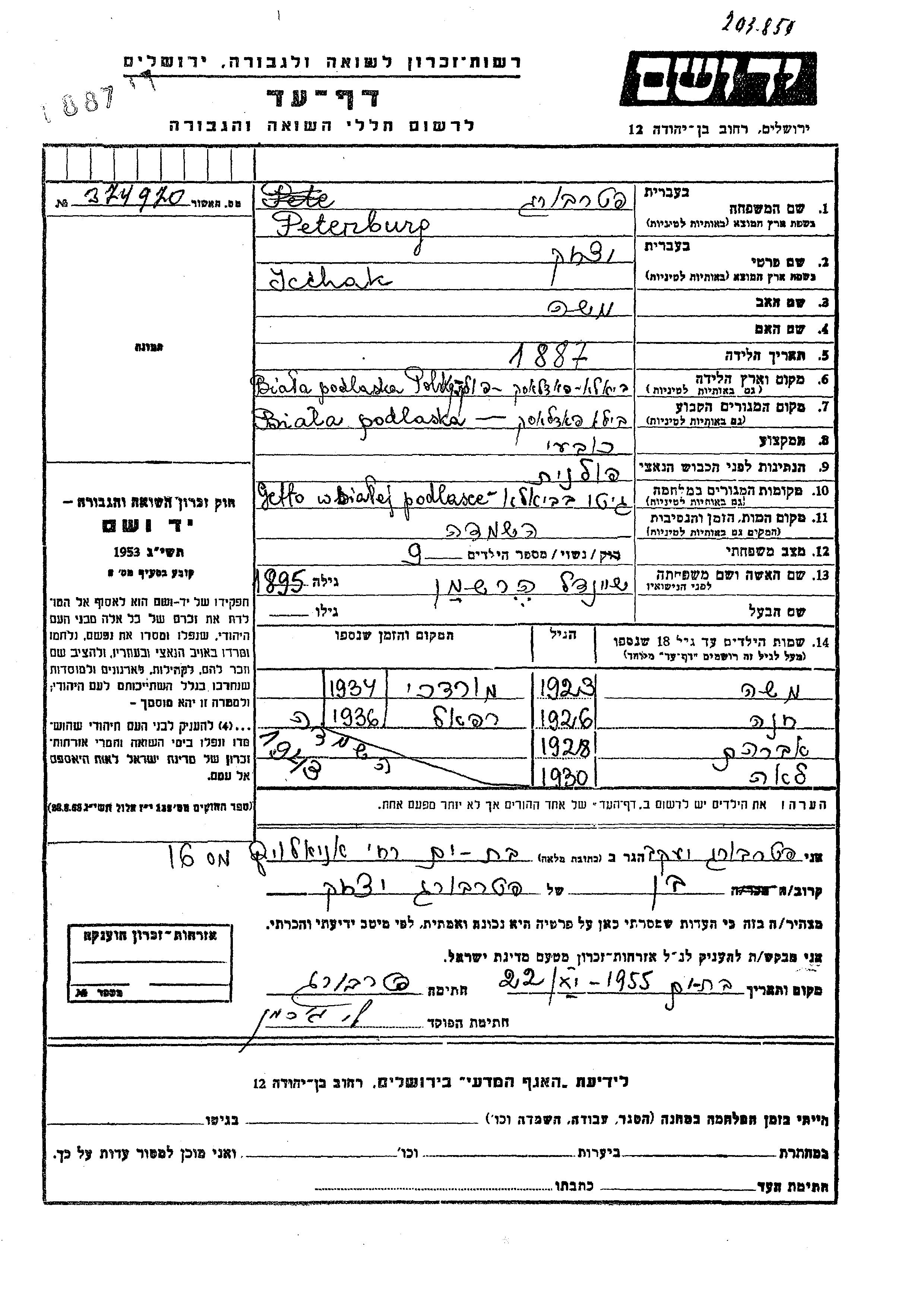 Yad Vashem - Pages of Testimony Names Memorial Collection