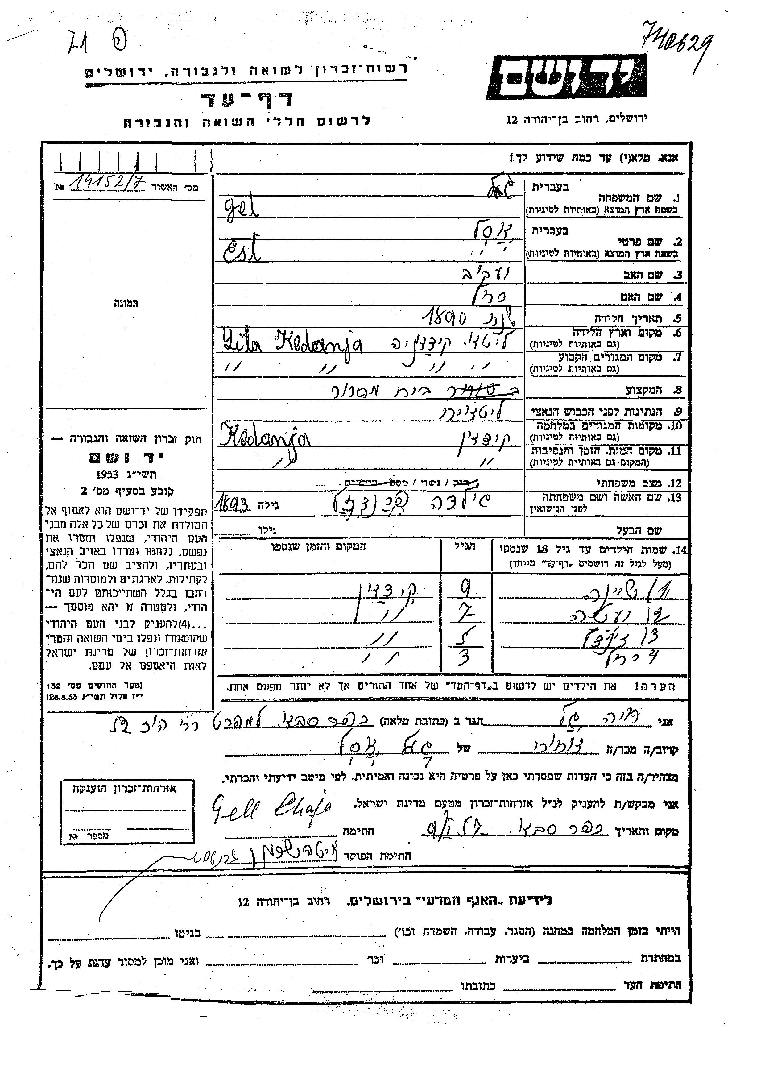 Gel Gal Rakhel Kedainai, Lituanie Feuille de témoignage
