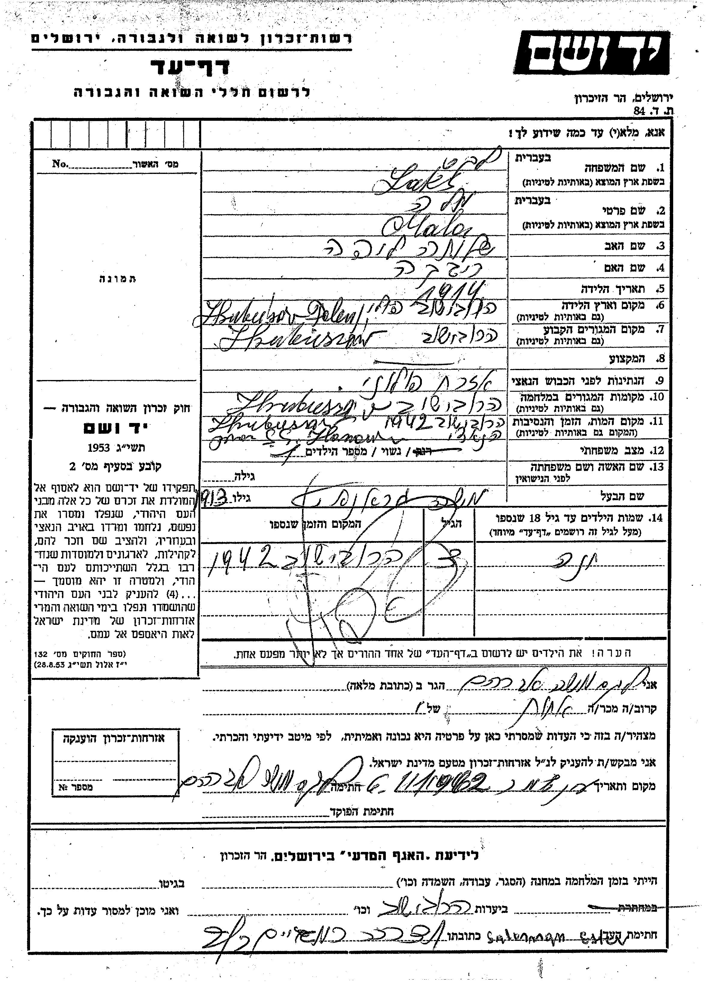 Yad Vashem - Pages of Testimony Names Memorial Collection