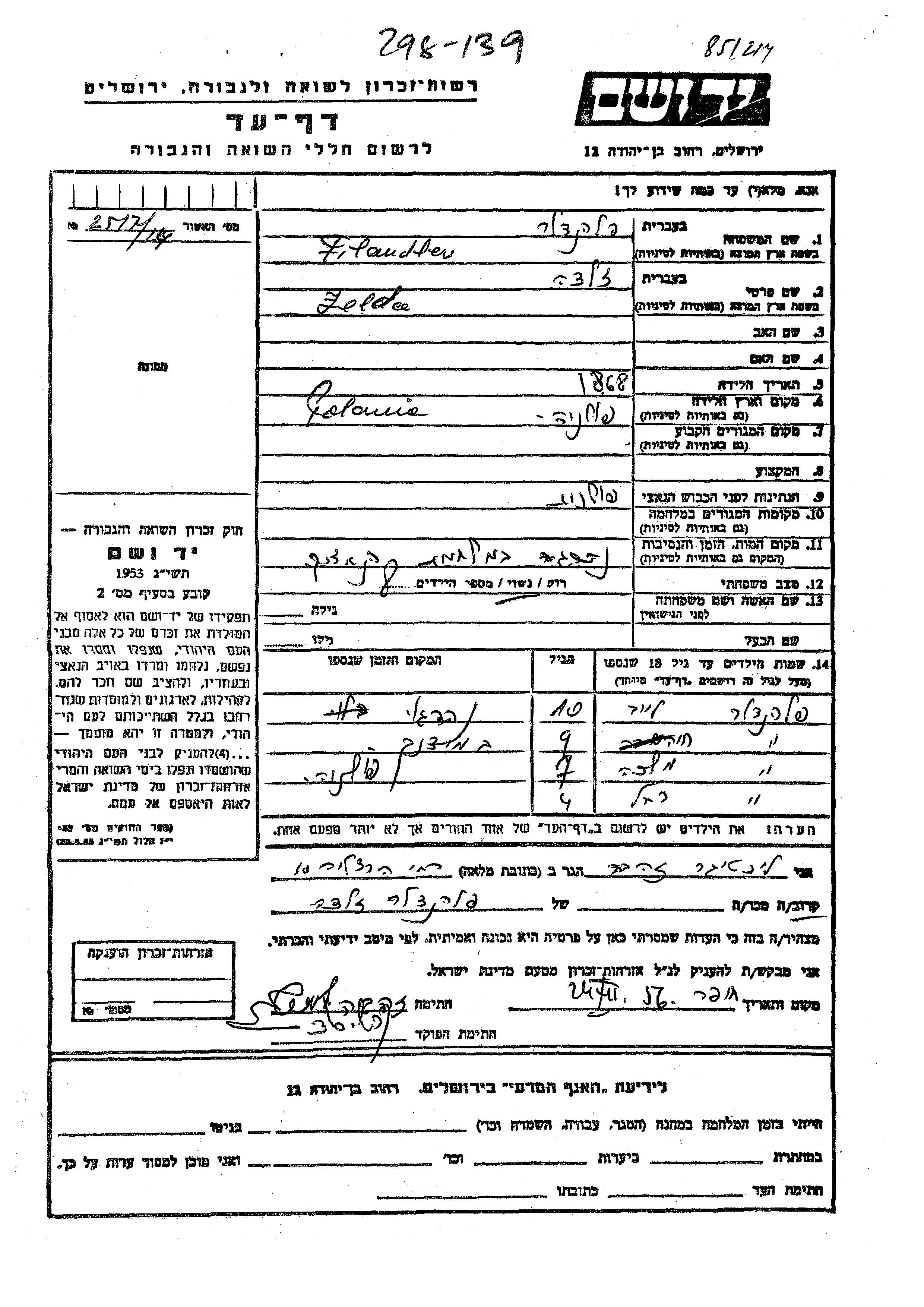 Yad Vashem - Pages of Testimony Names Memorial Collection