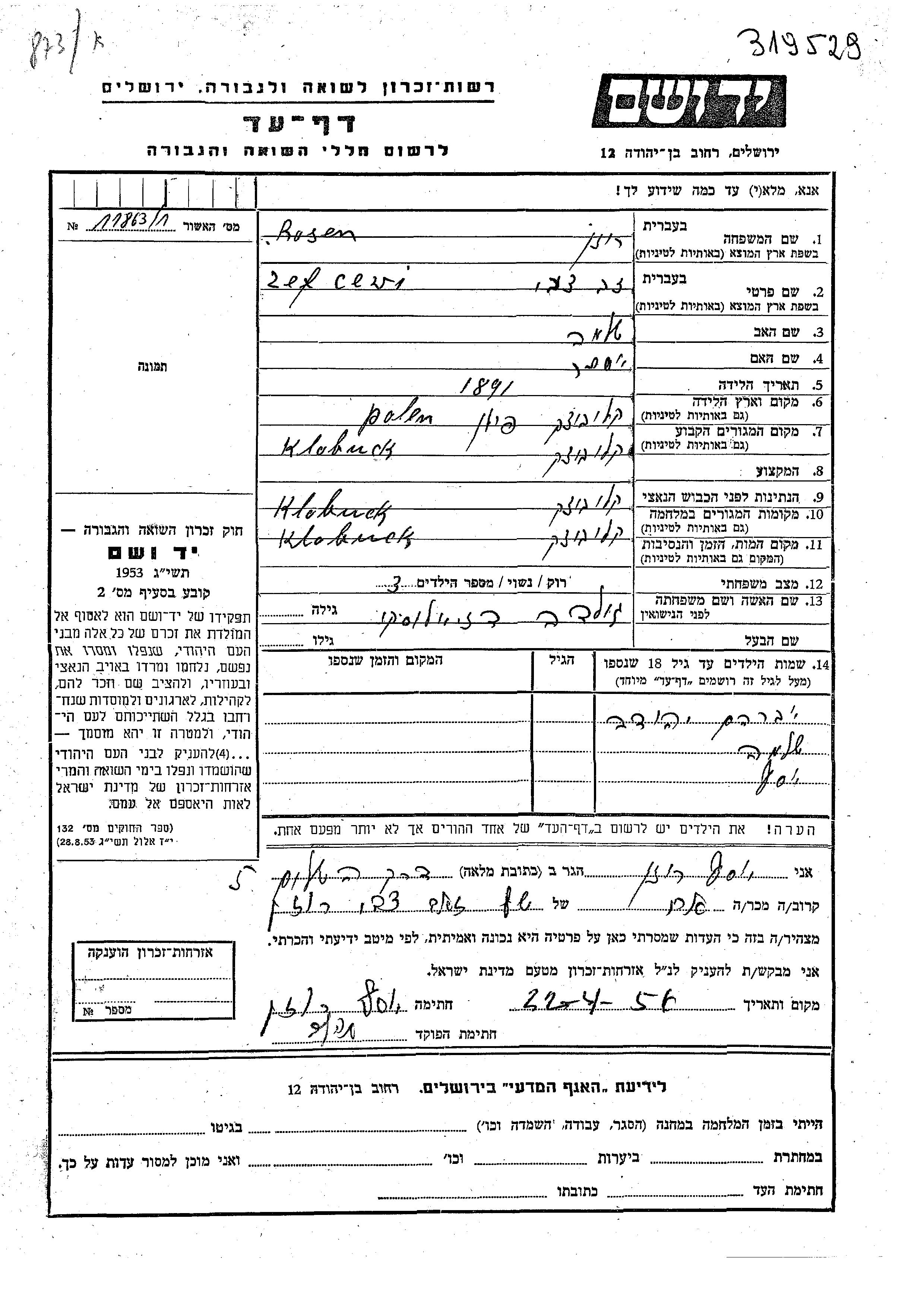 Rosen Yosef Klobuck, Pologne Feuille de témoignage