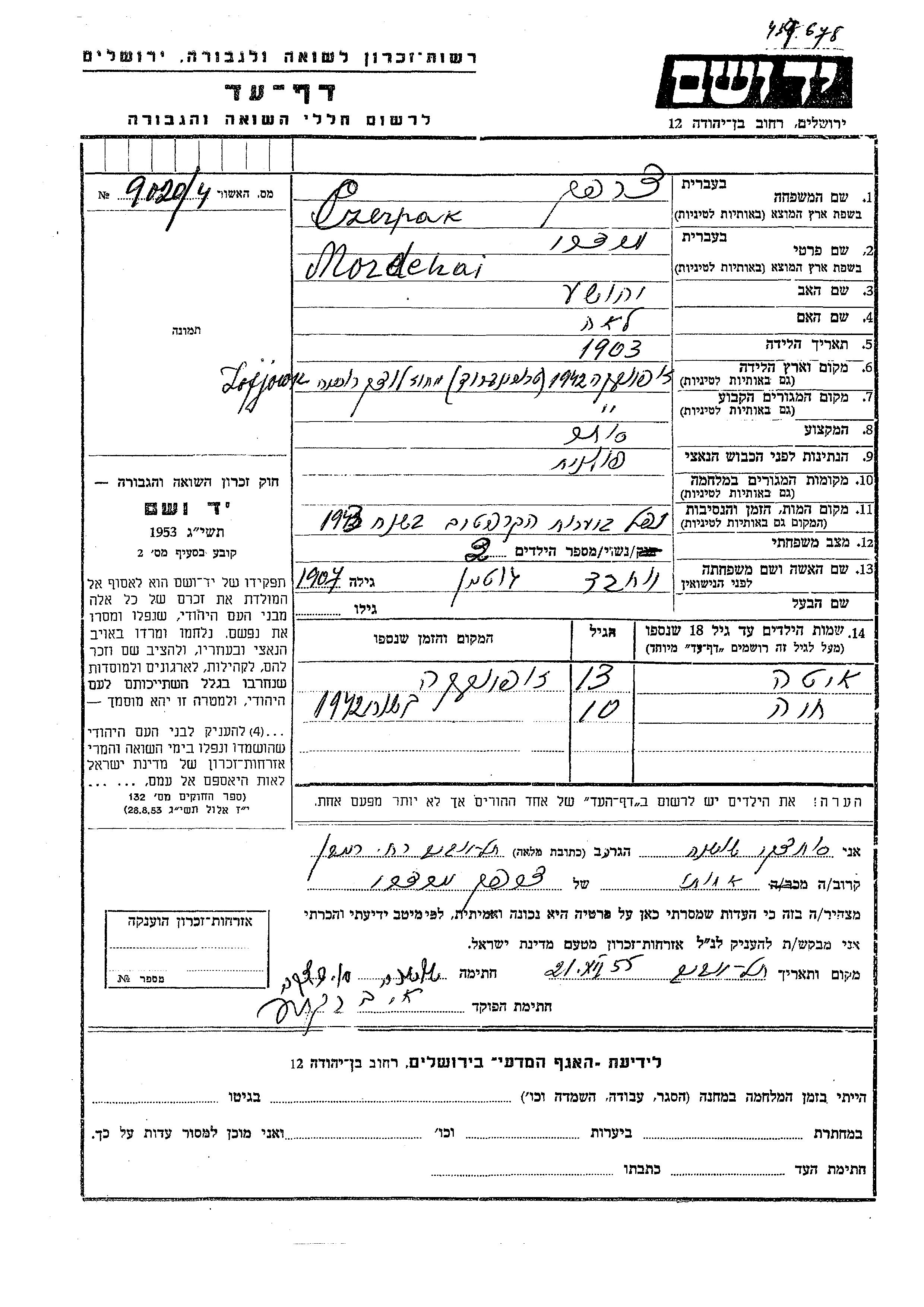 Yad Vashem - Pages of Testimony Names Memorial Collection