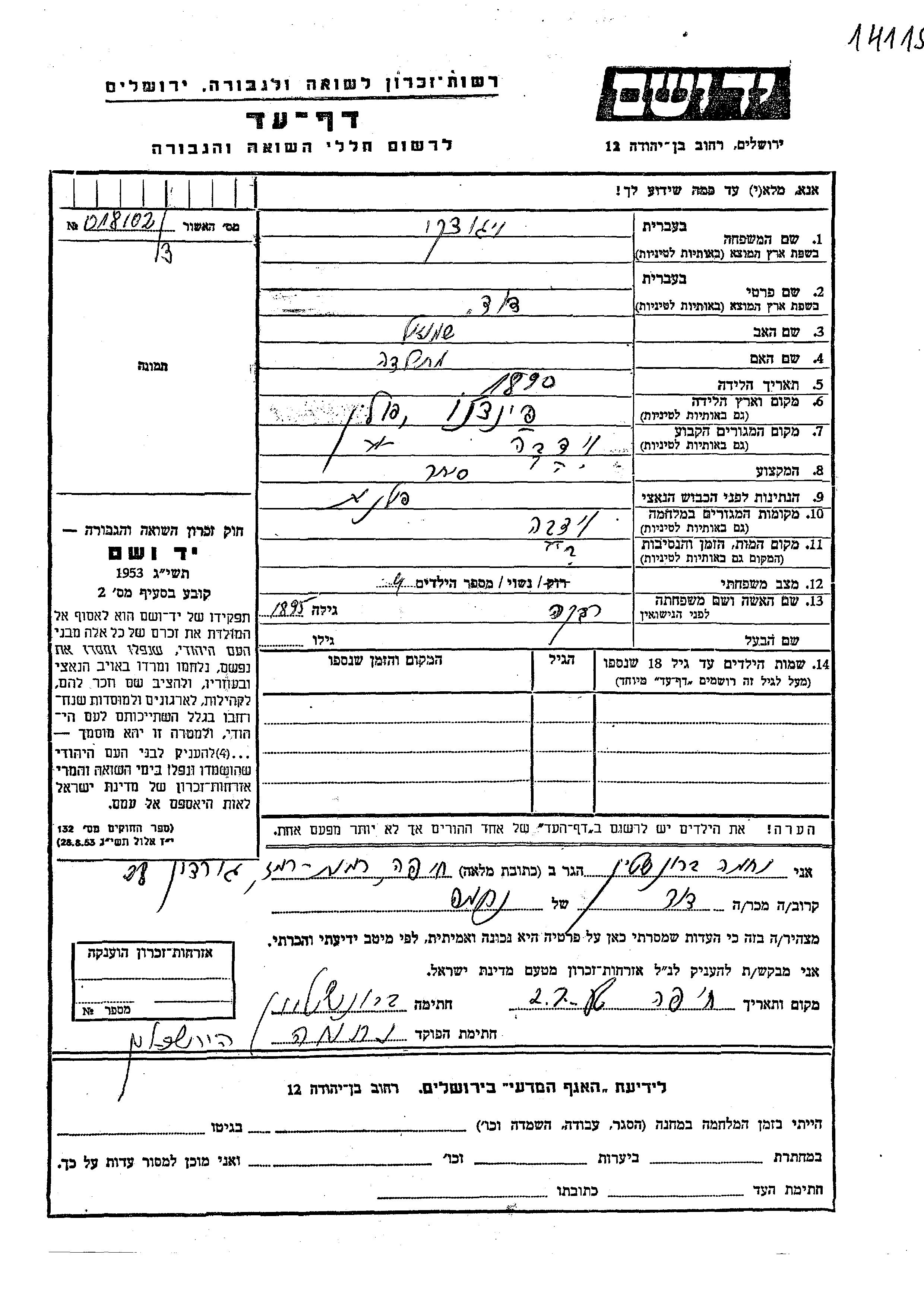 Yad Vashem - Pages of Testimony Names Memorial Collection