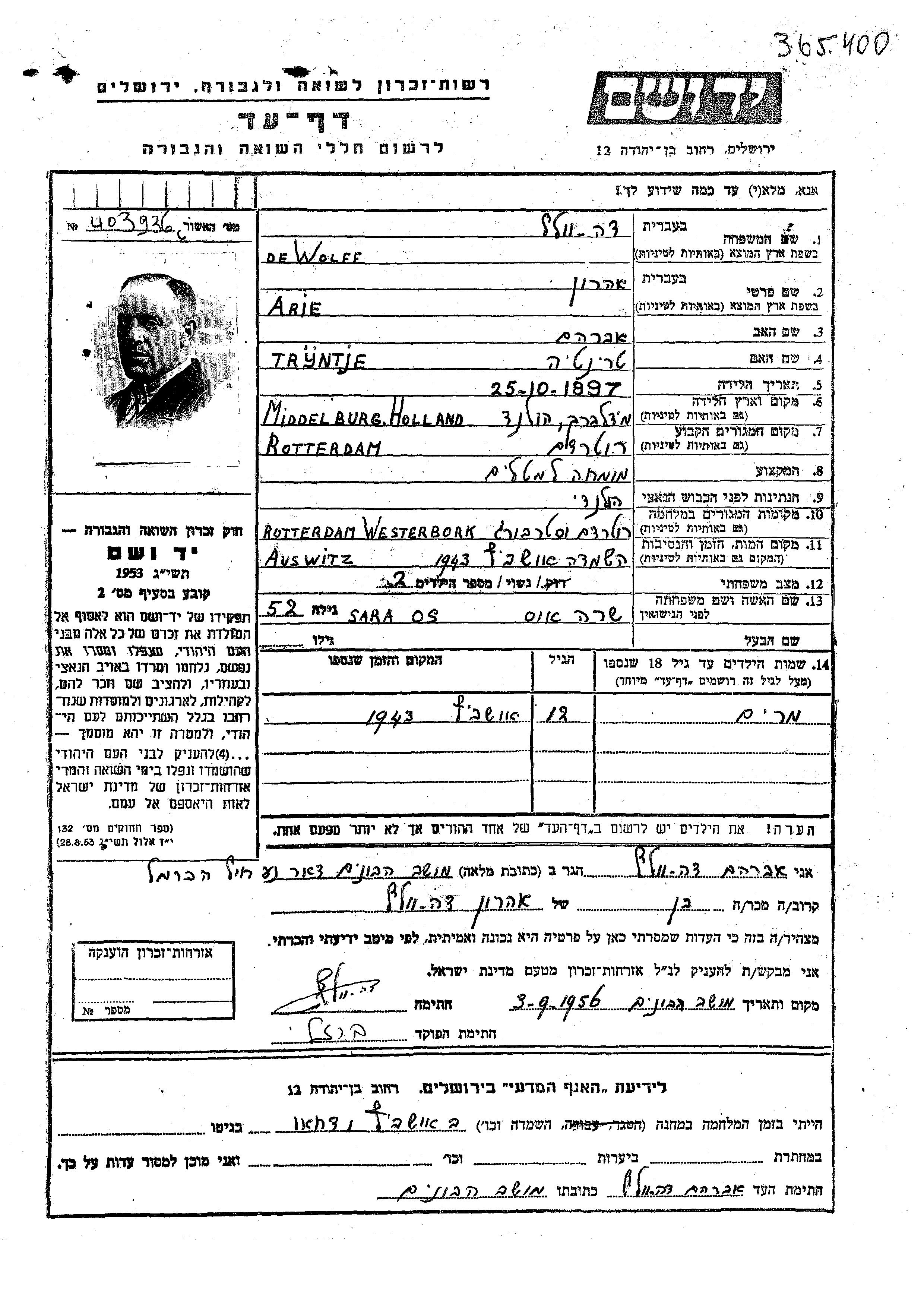 Yad Vashem - Pages of Testimony Names Memorial Collection