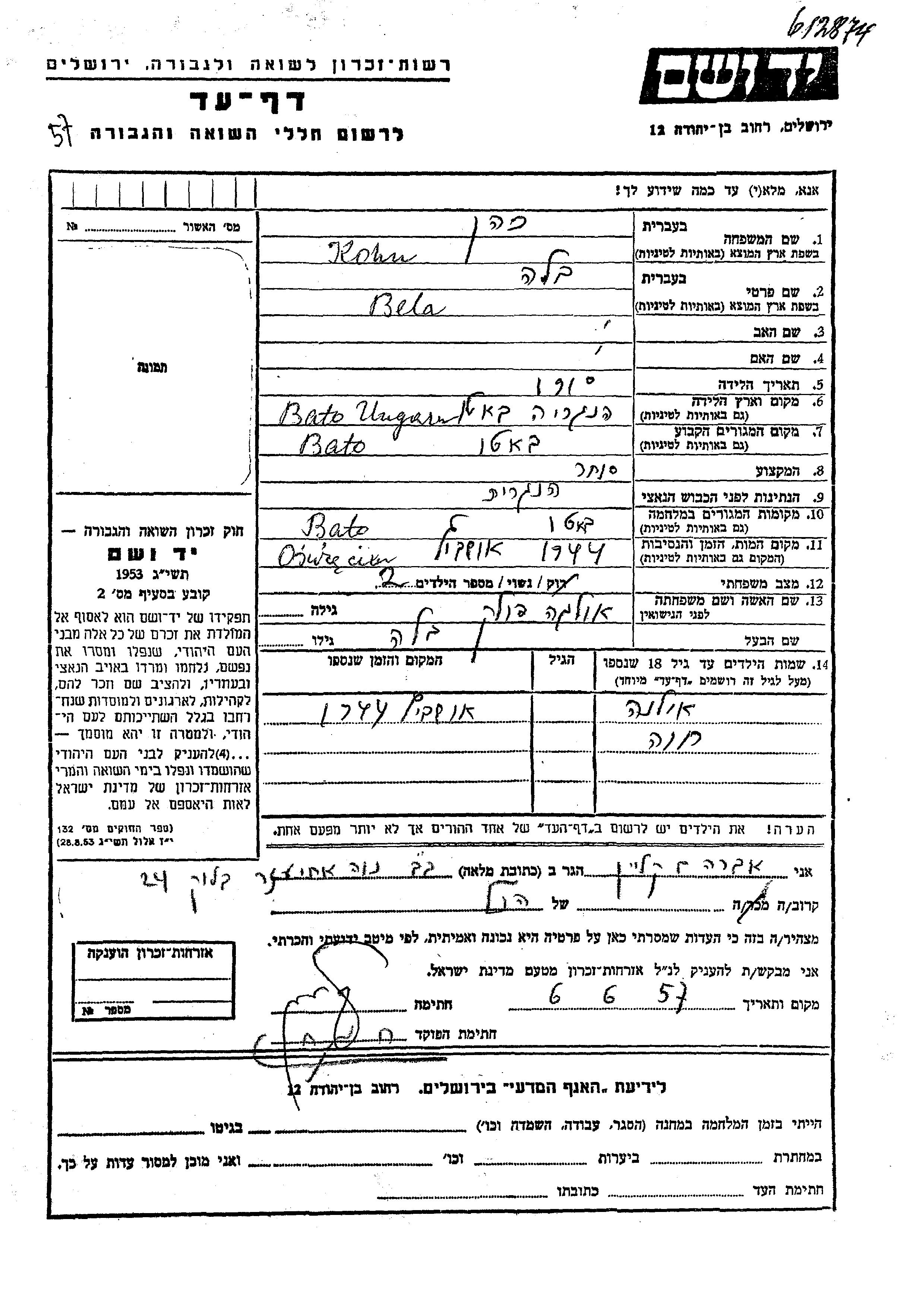 Yad Vashem - Pages of Testimony Names Memorial Collection