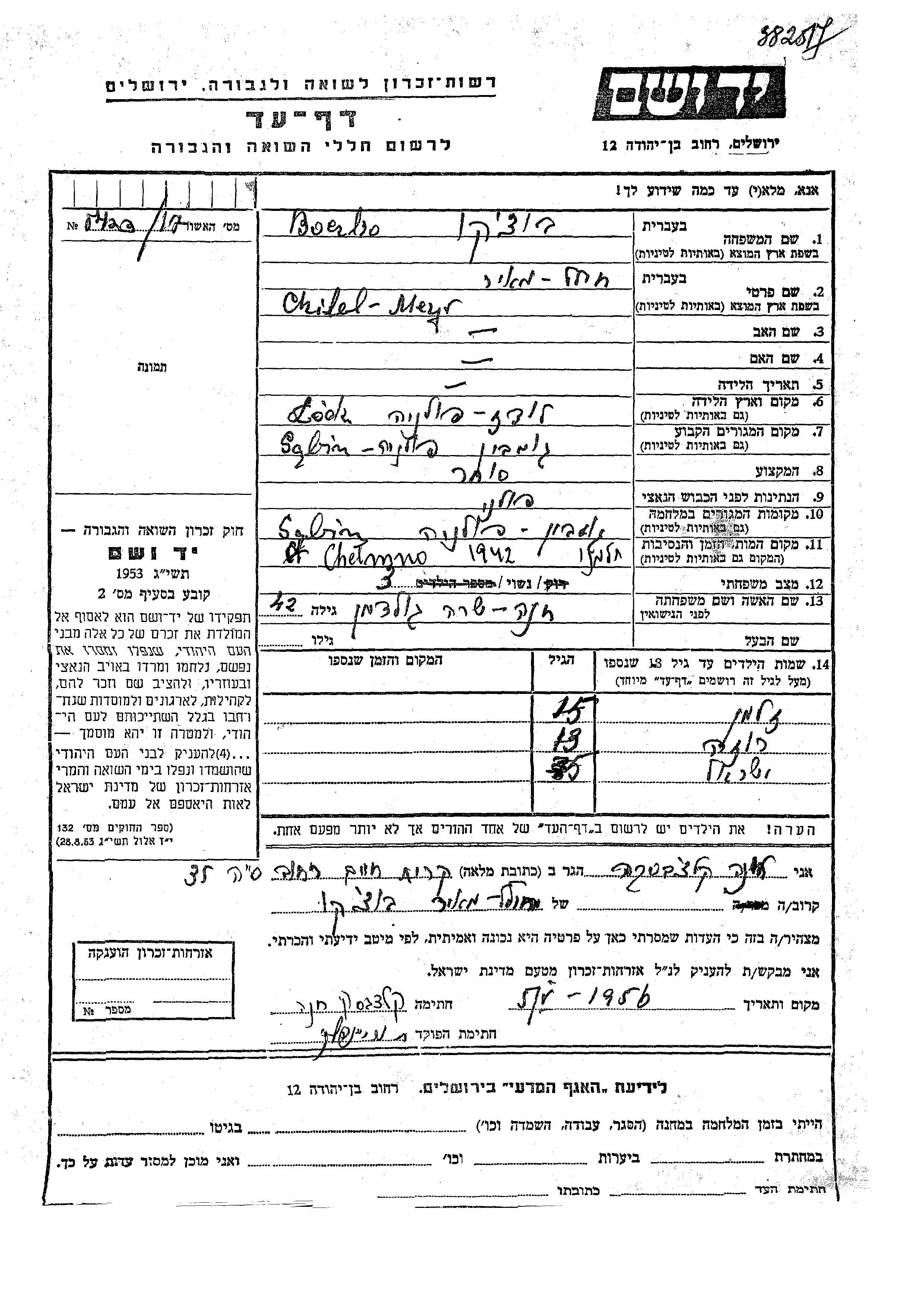 Yad Vashem - Pages of Testimony Names Memorial Collection