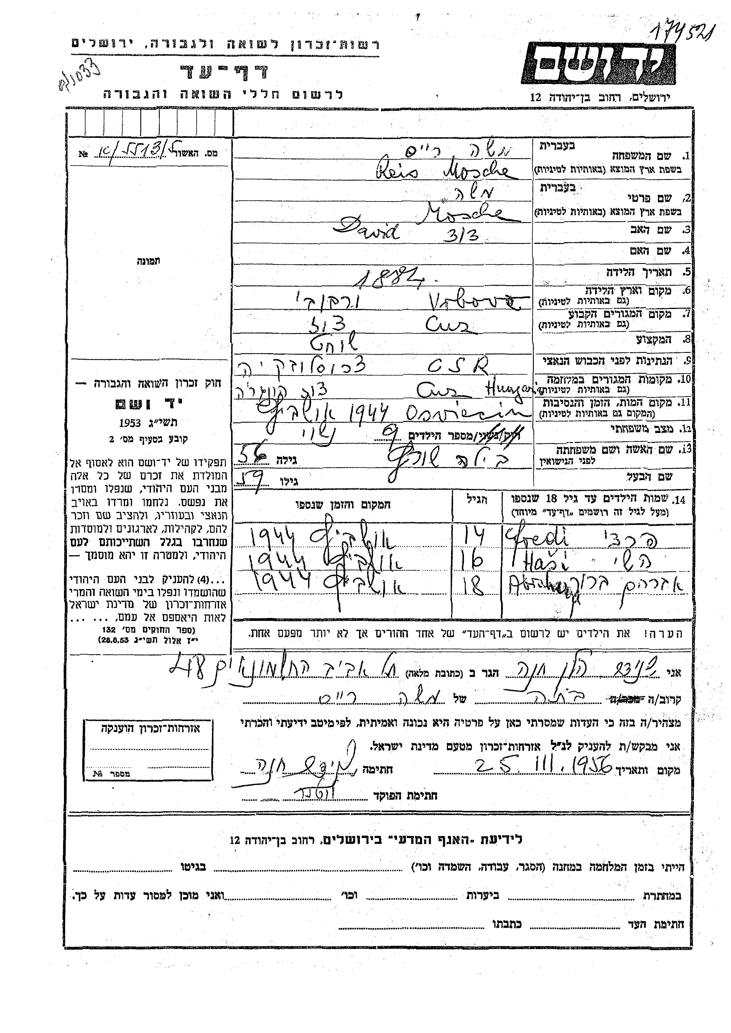 Yad Vashem - Pages of Testimony Names Memorial Collection