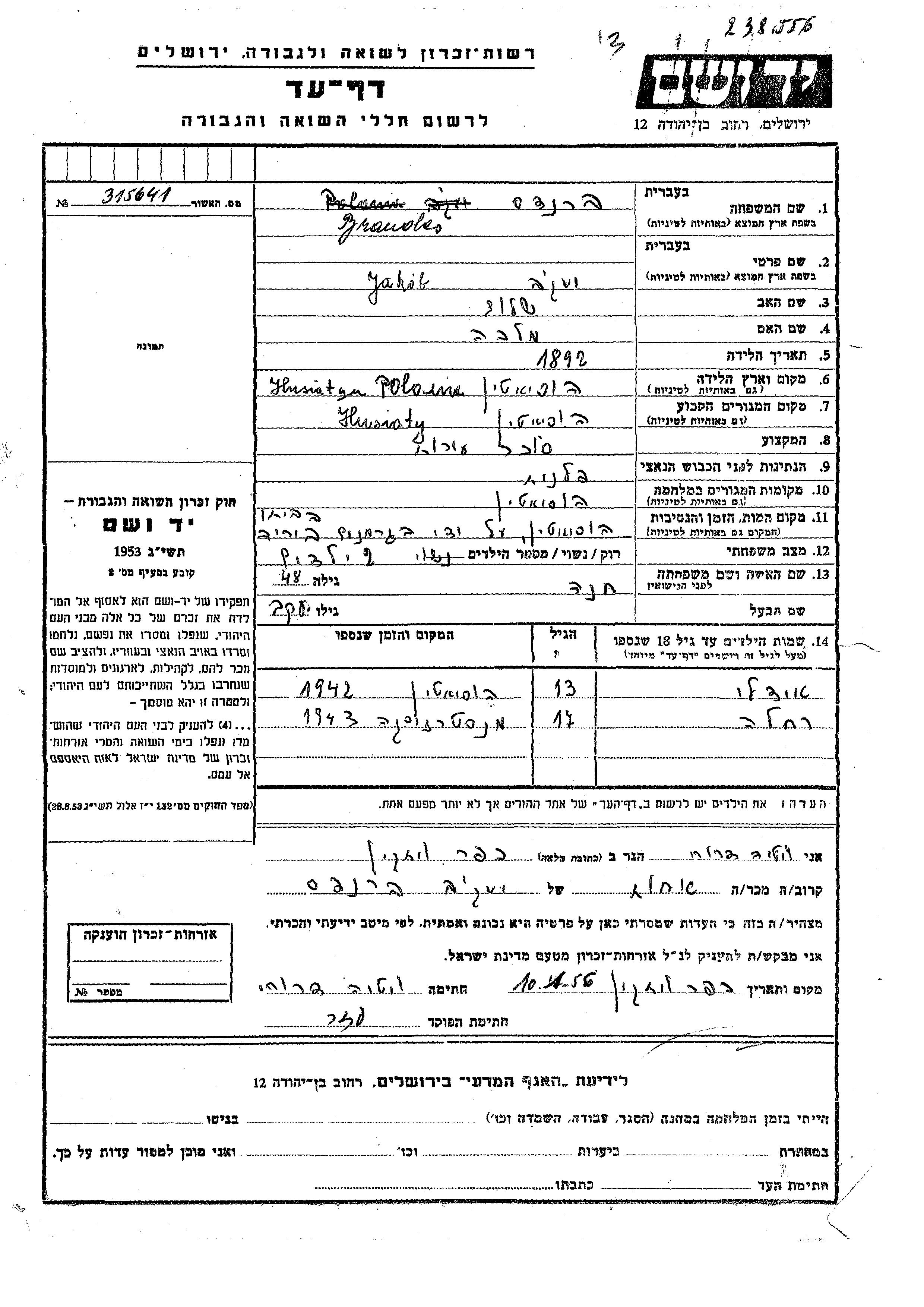 Yad Vashem - Pages of Testimony Names Memorial Collection