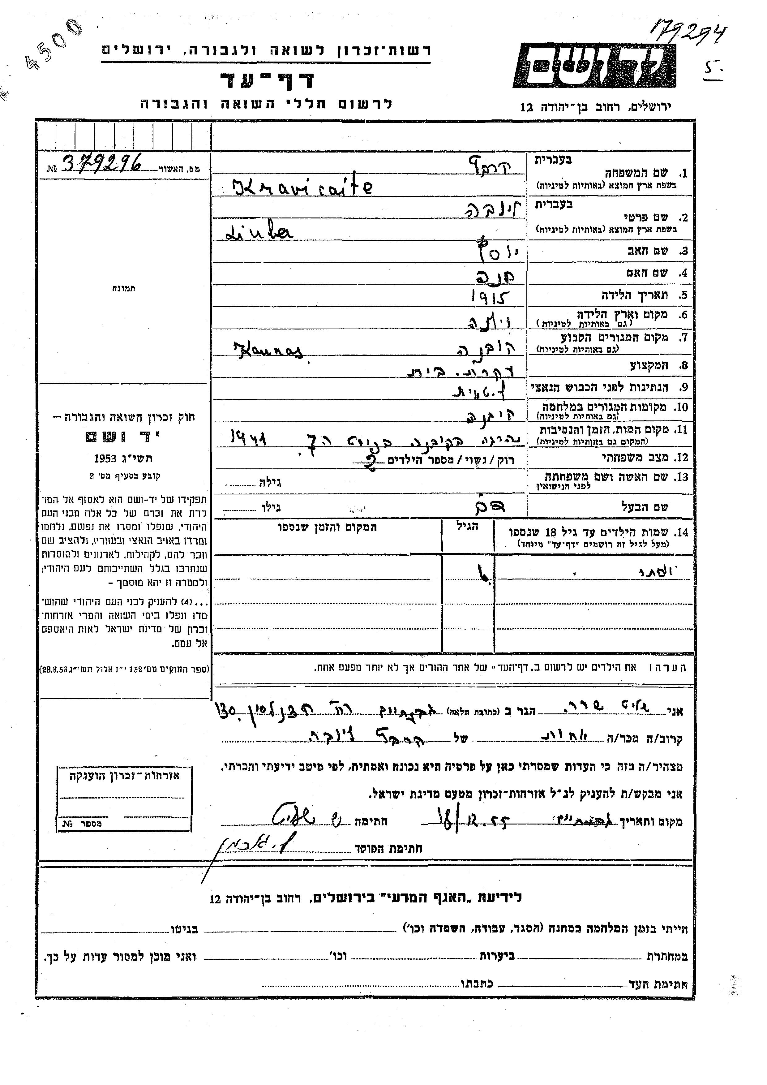 Yad Vashem - Pages of Testimony Names Memorial Collection