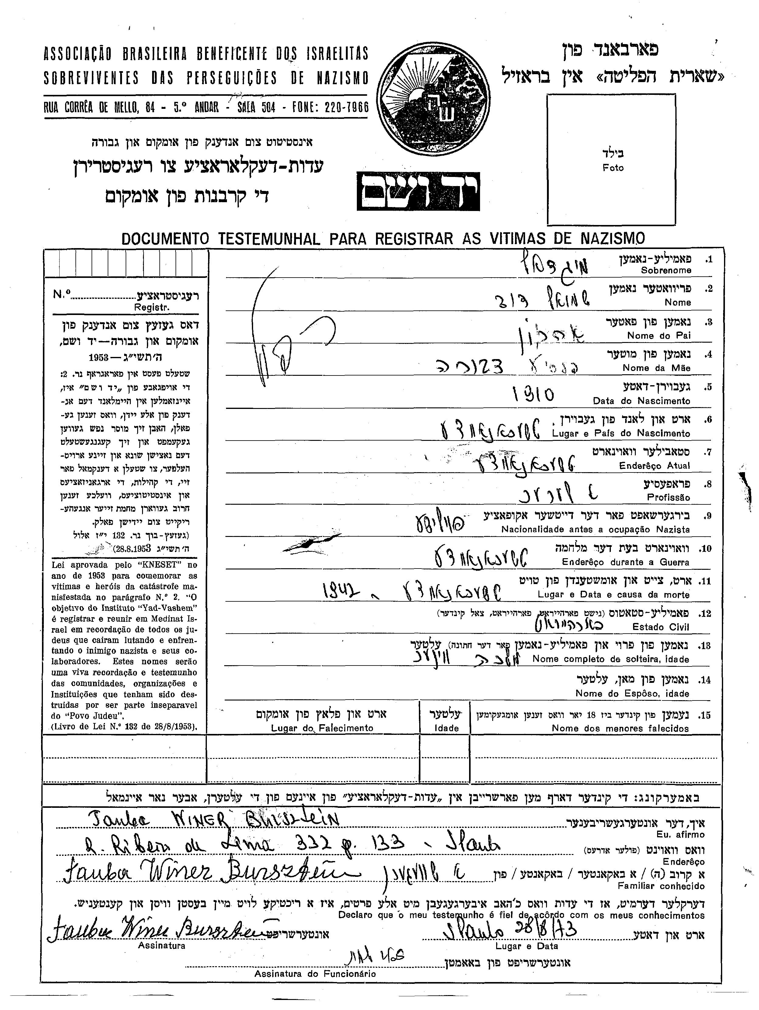 Yad Vashem - Pages of Testimony Names Memorial Collection