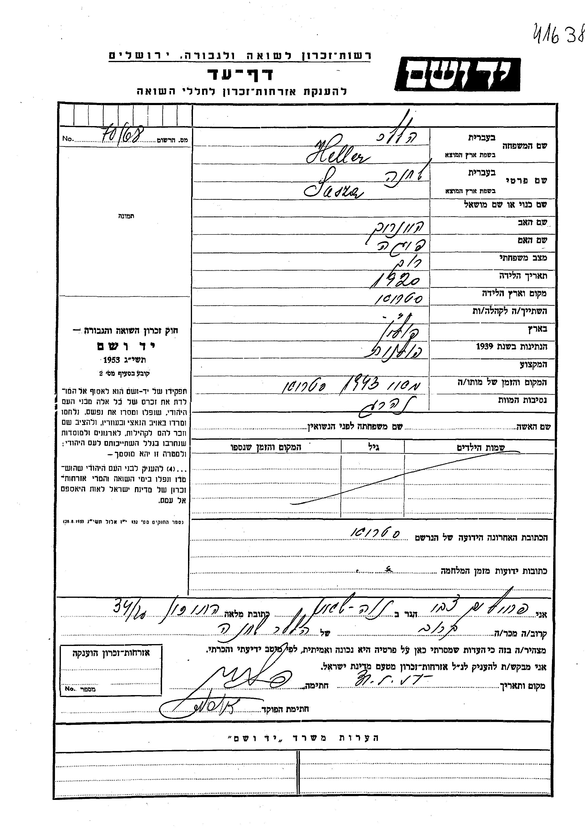 Yad Vashem - Pages of Testimony Names Memorial Collection
