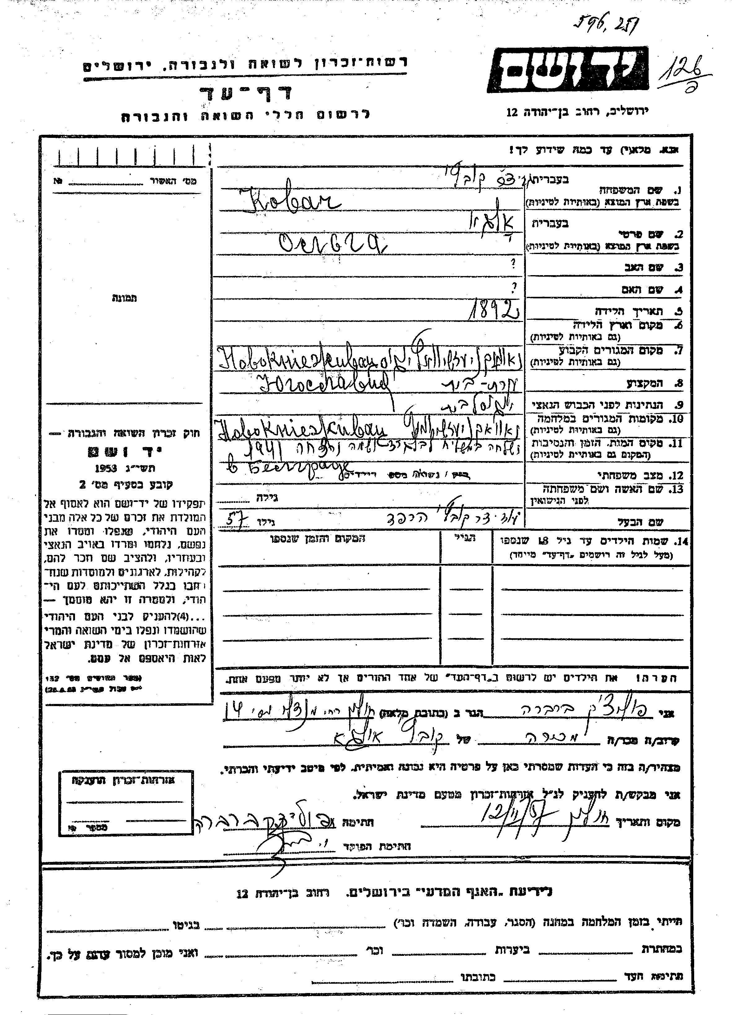 Yad Vashem - Pages of Testimony Names Memorial Collection