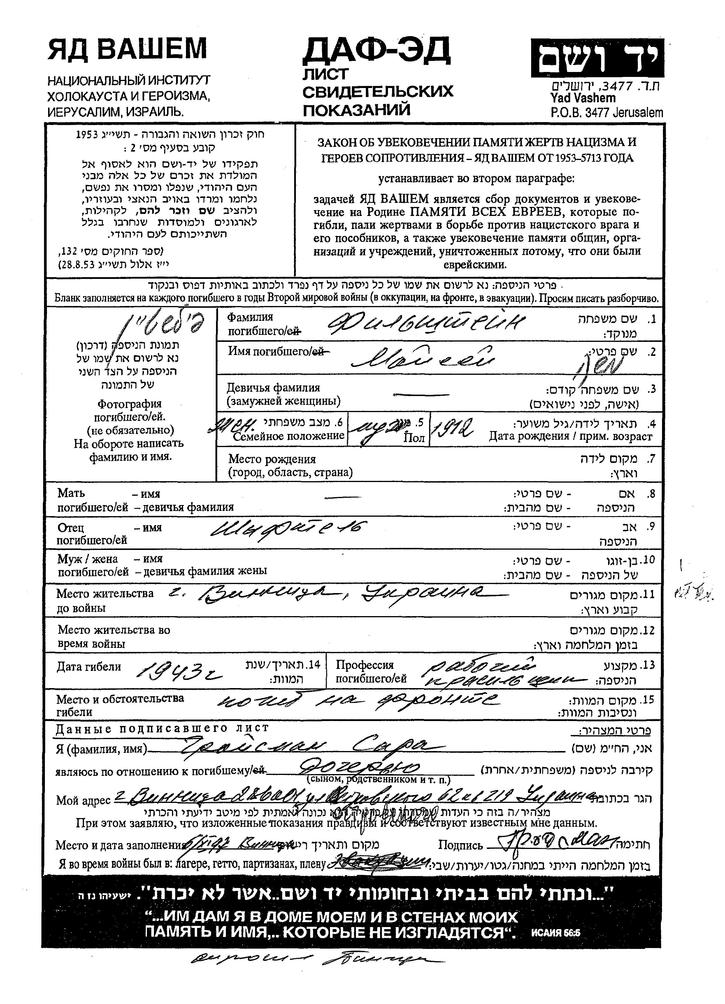 Recherche par date de la mort pendant la période de la Shoah: 1933-1945. Sélectionnez 'Exact'; dans la liste pour rechercher l'année exacte, ou sélectionner '+/- 2 ans'; ou '+/- 5 ans