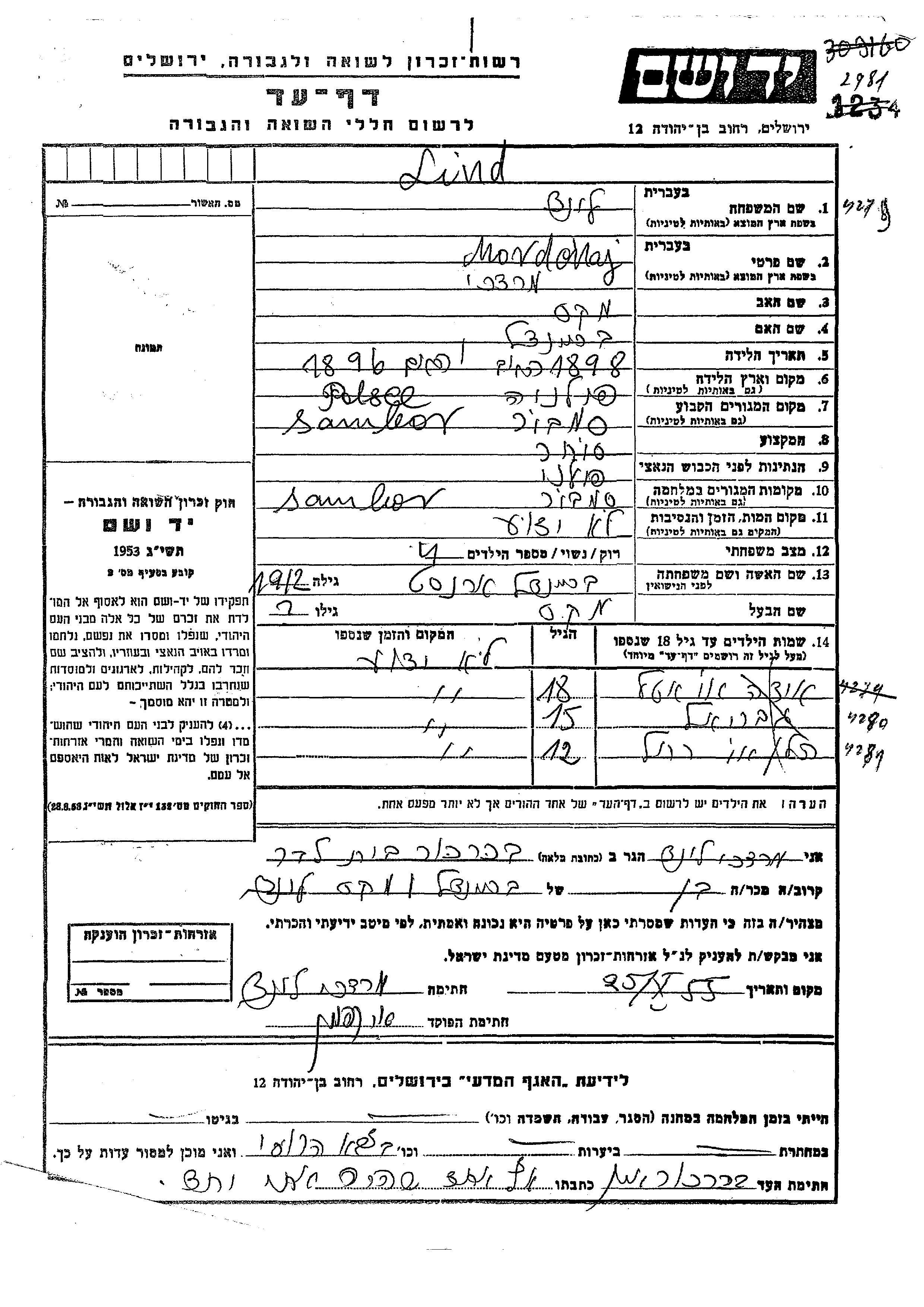 Yad Vashem - Pages of Testimony Names Memorial Collection