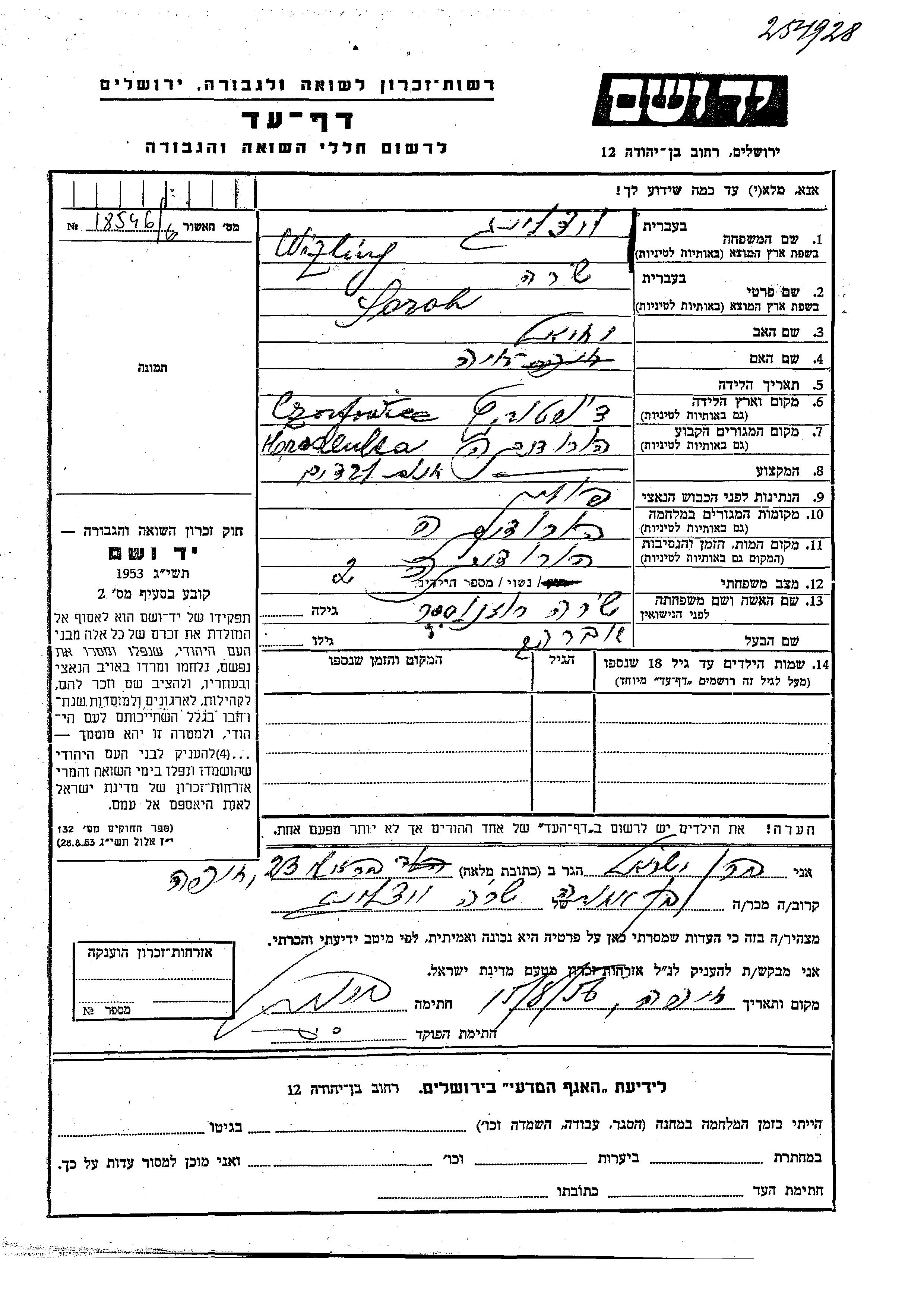 Yad Vashem - Pages of Testimony Names Memorial Collection