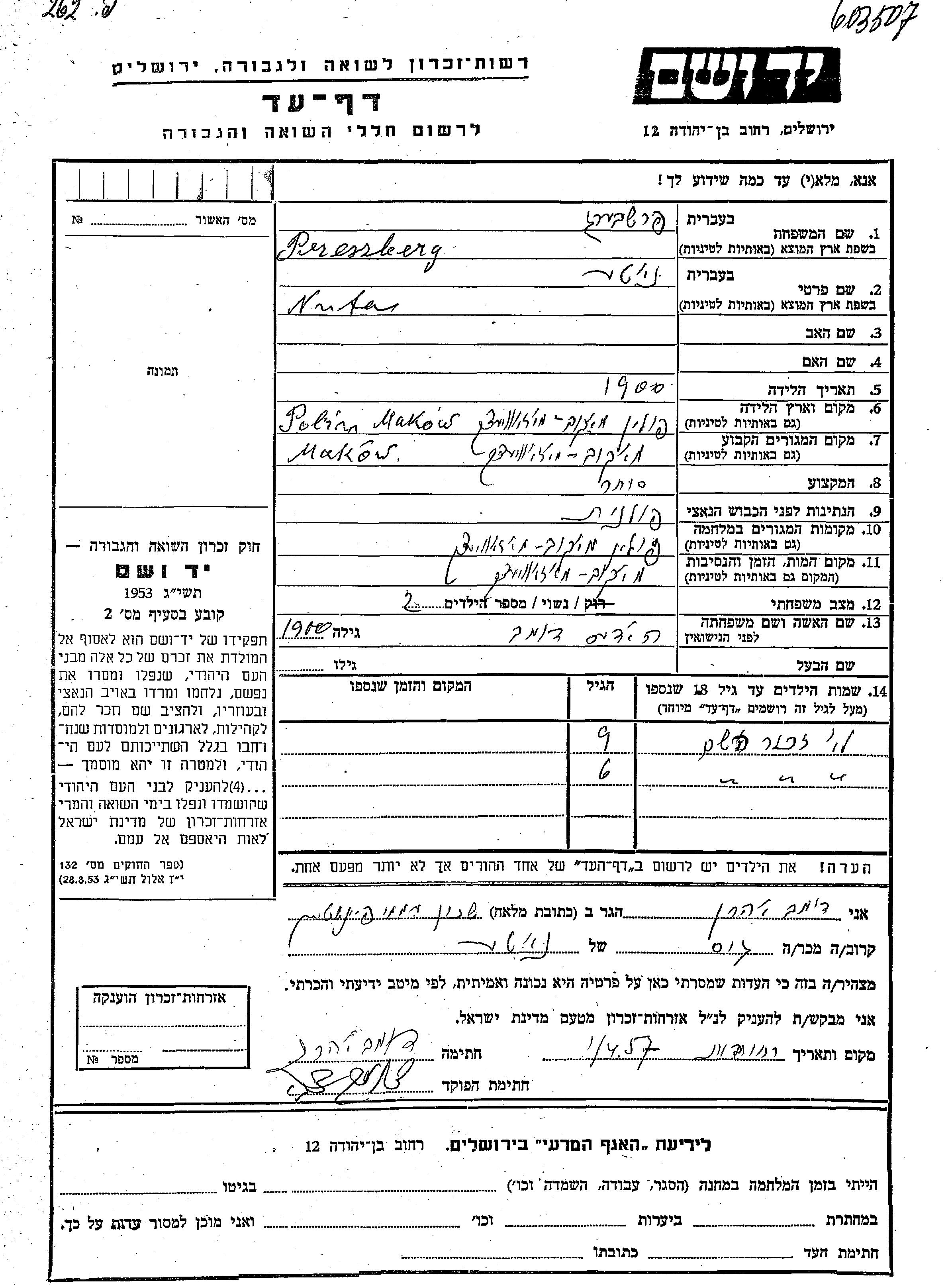 Yad Vashem - Pages of Testimony Names Memorial Collection