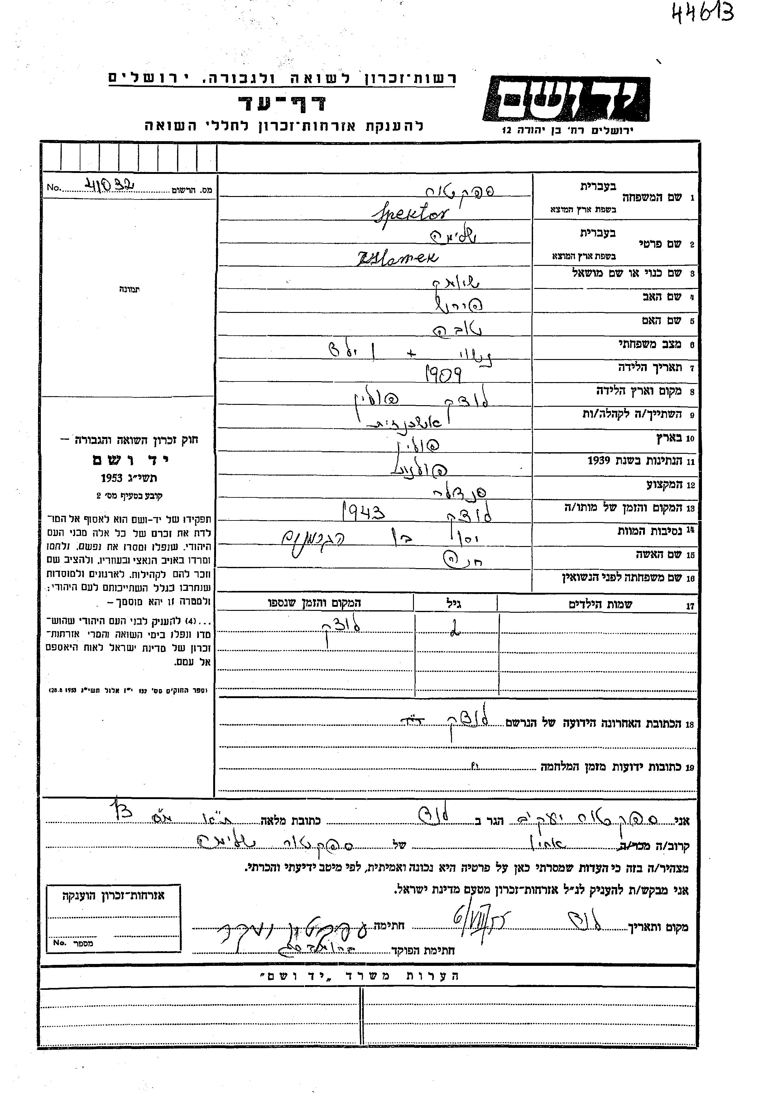 Yad Vashem - Pages of Testimony Names Memorial Collection
