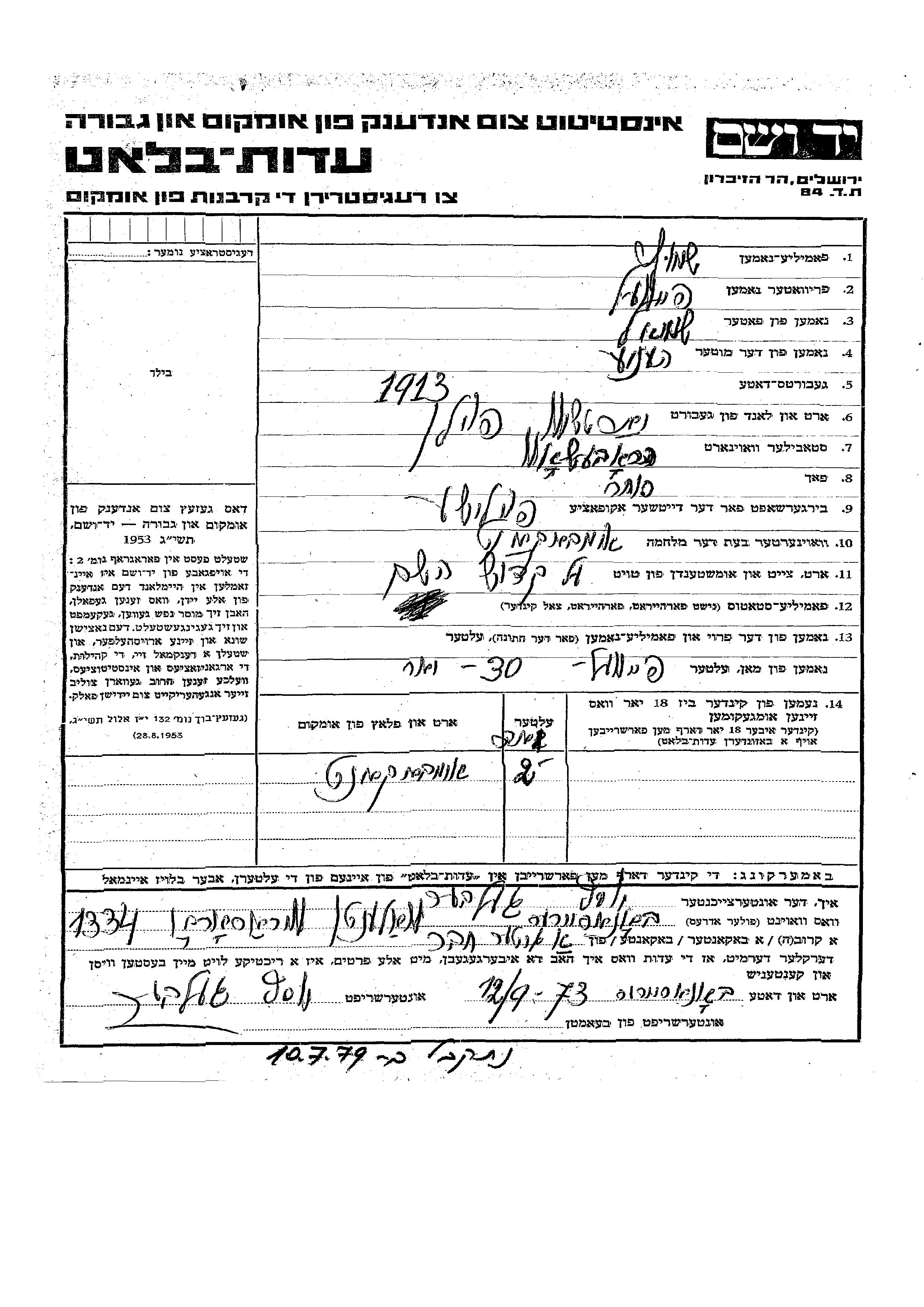 Yad Vashem - Pages of Testimony Names Memorial Collection