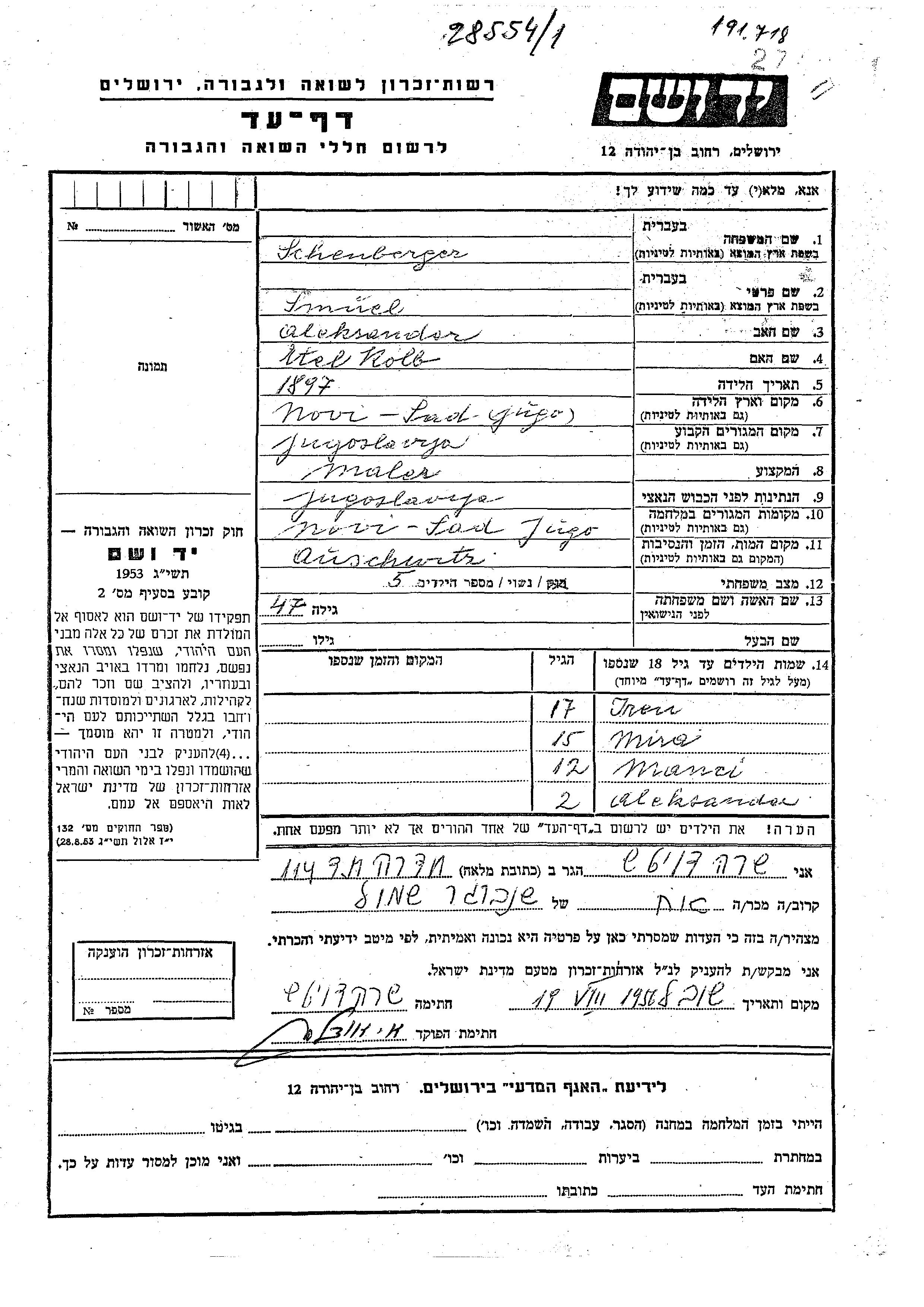 Yad Vashem - Pages of Testimony Names Memorial Collection