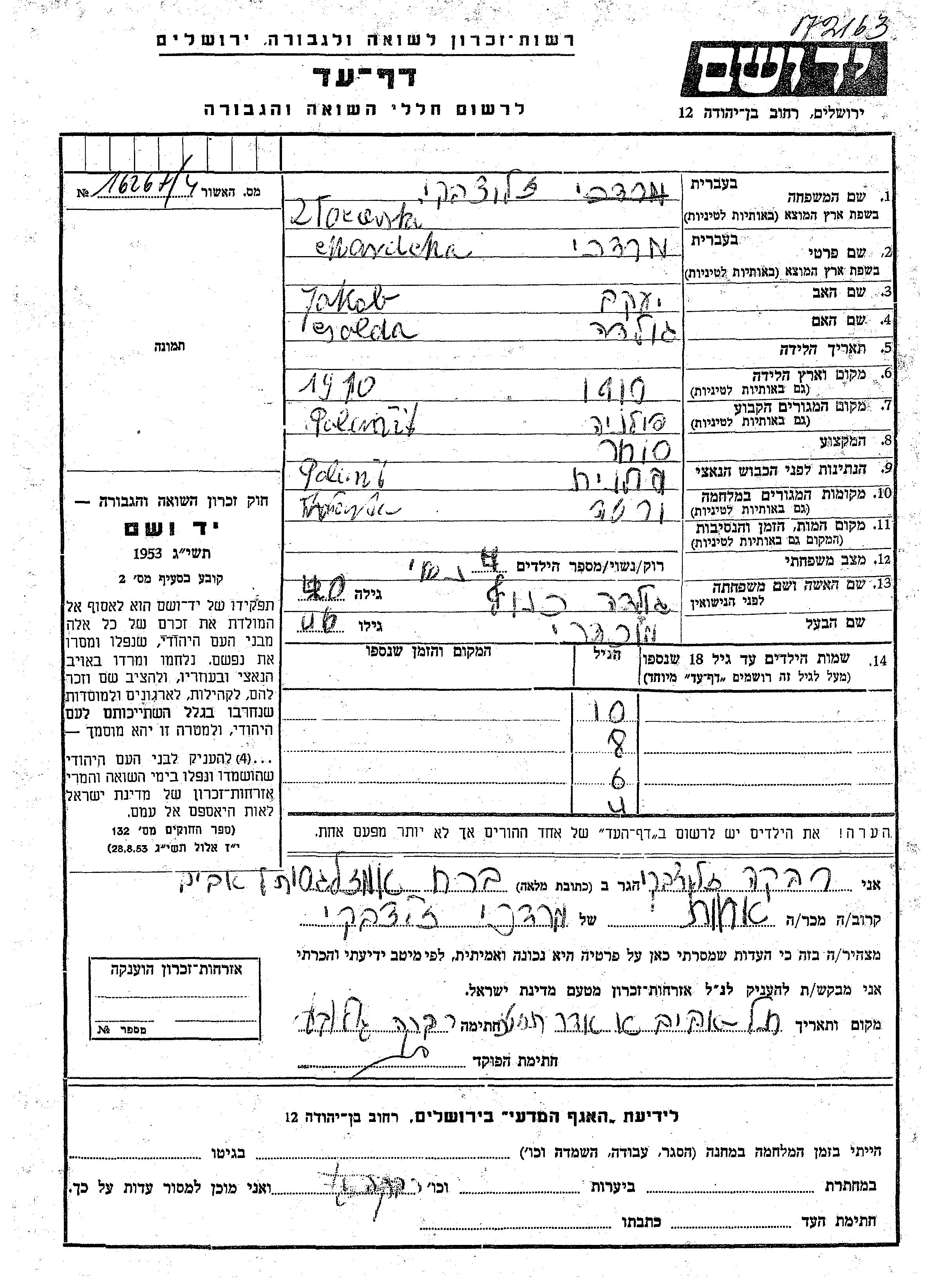 Yad Vashem - Pages of Testimony Names Memorial Collection