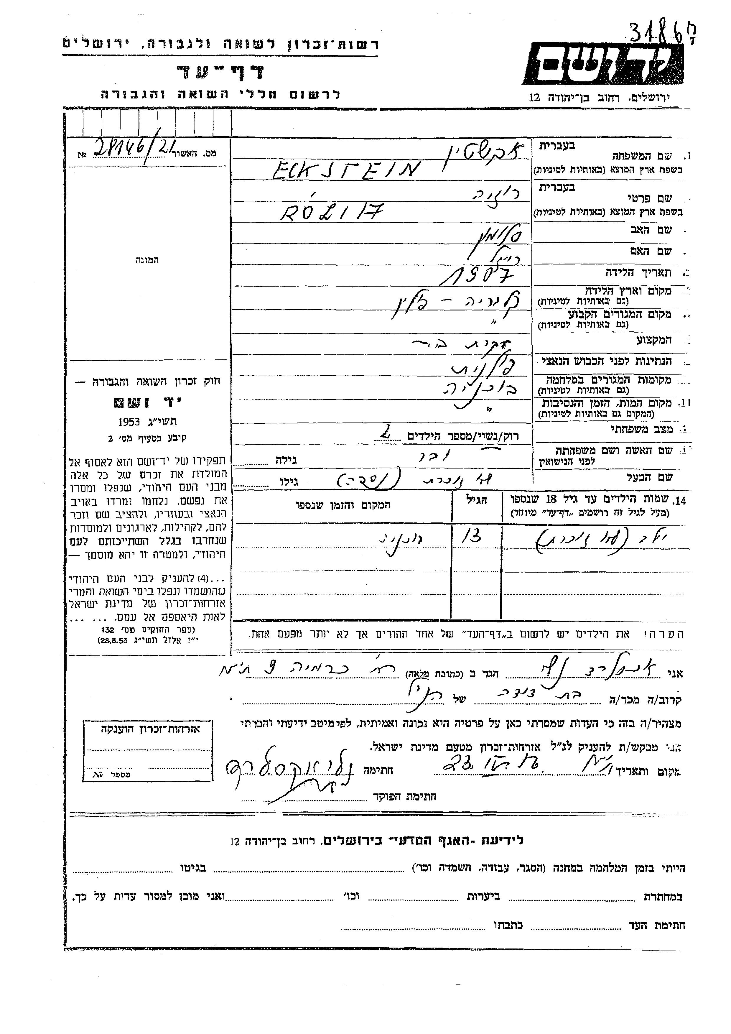 Yad Vashem - Pages of Testimony Names Memorial Collection