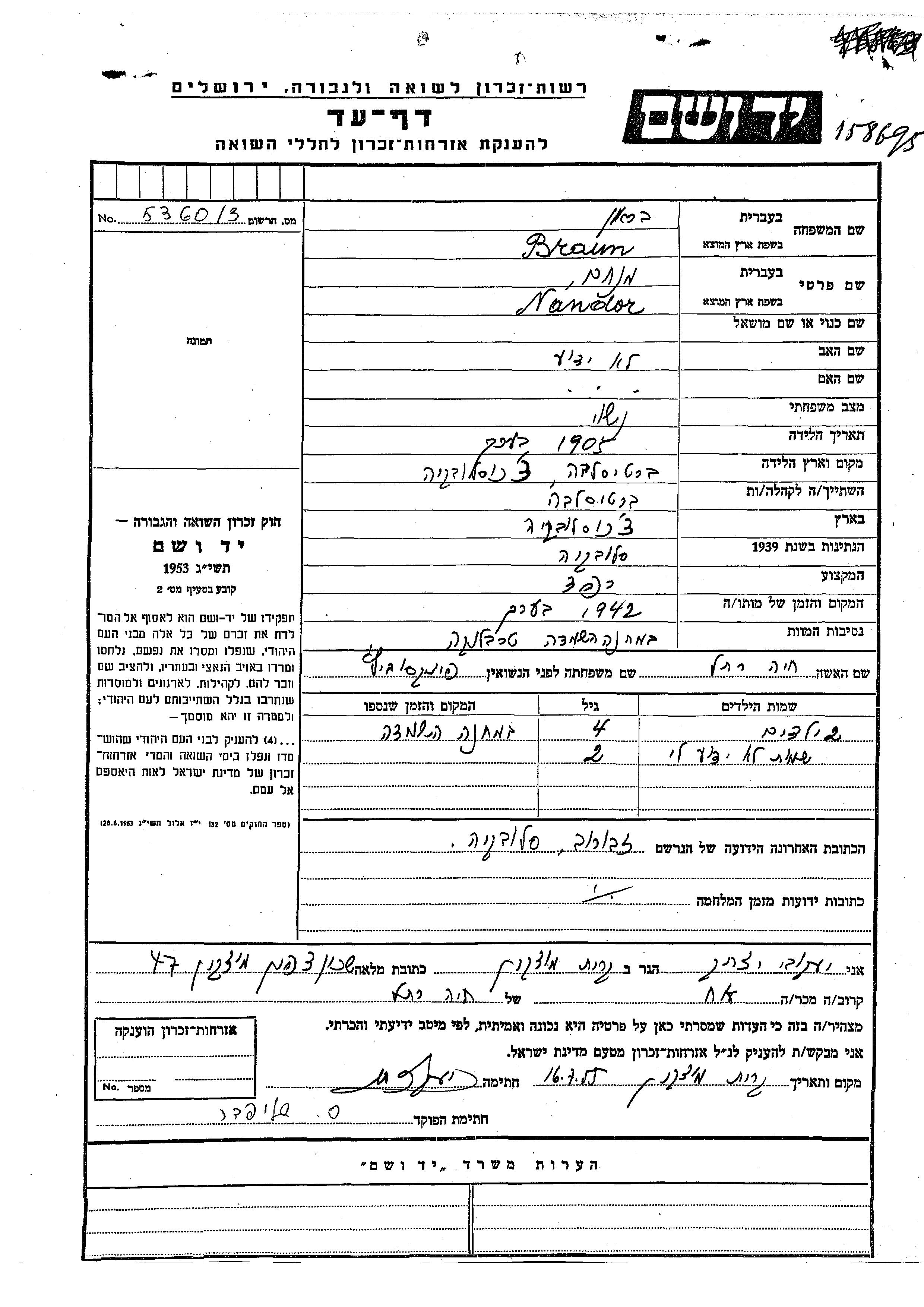 Yad Vashem - Pages of Testimony Names Memorial Collection