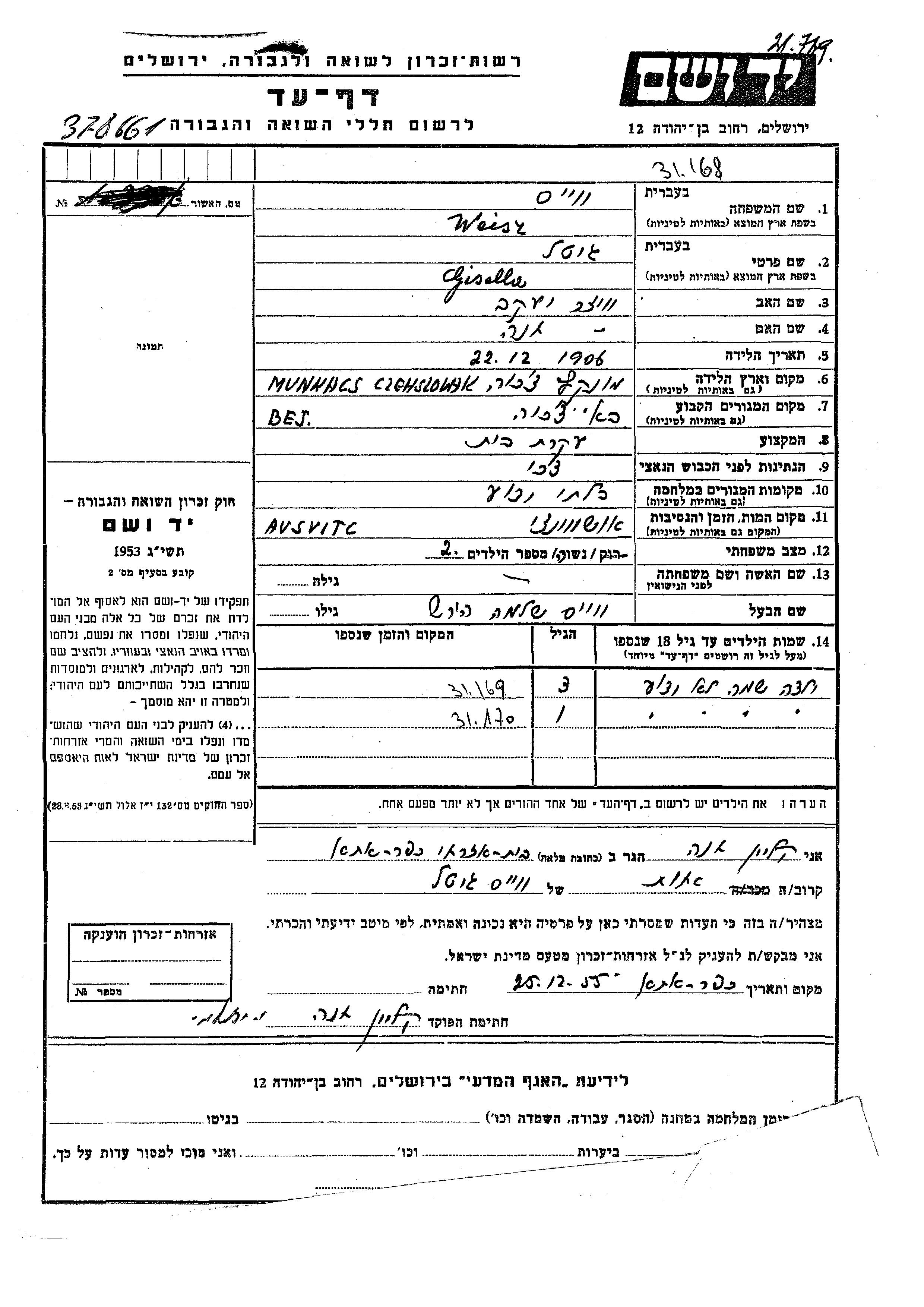 Yad Vashem - Pages of Testimony Names Memorial Collection