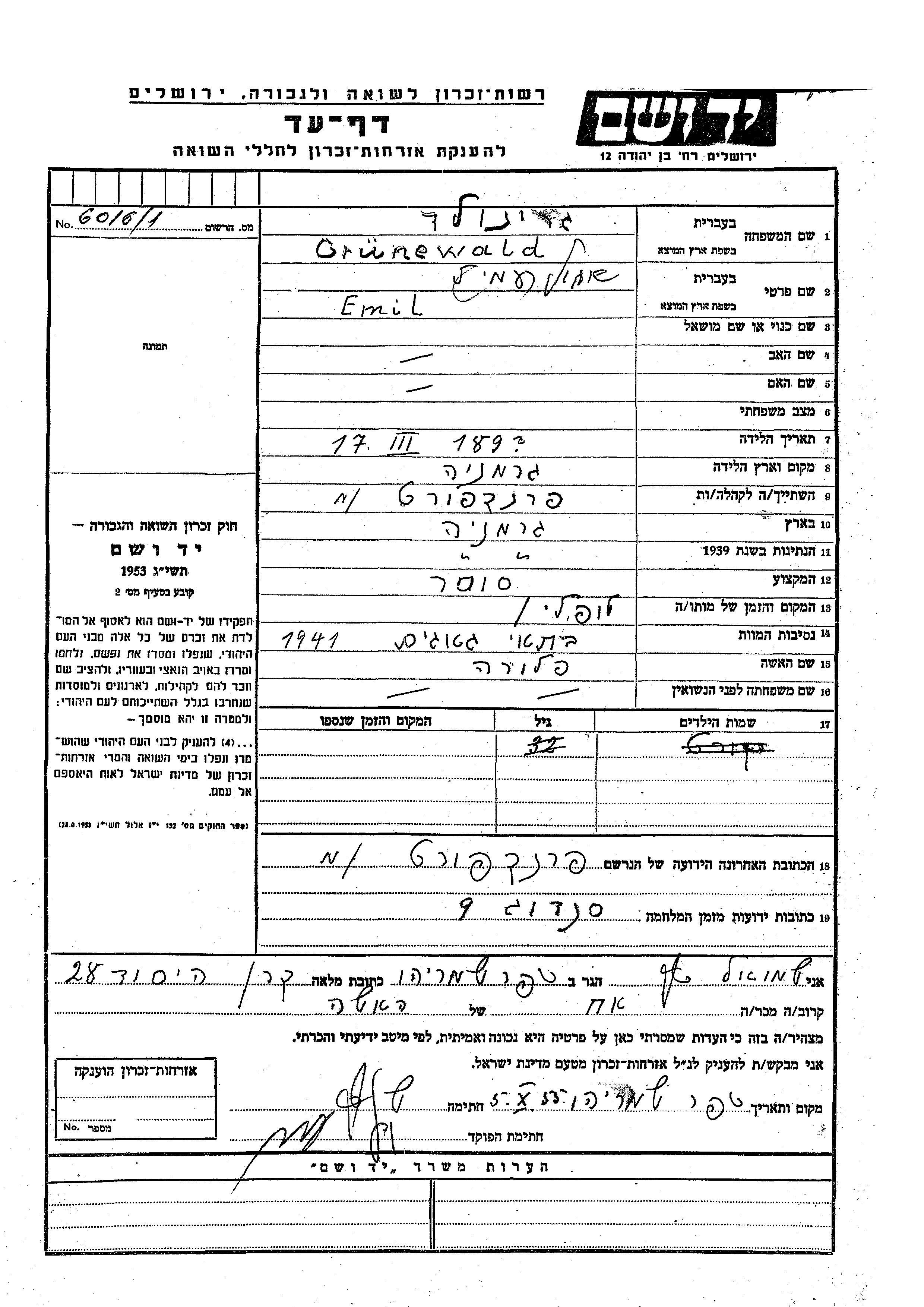 Yad Vashem - Pages of Testimony Names Memorial Collection