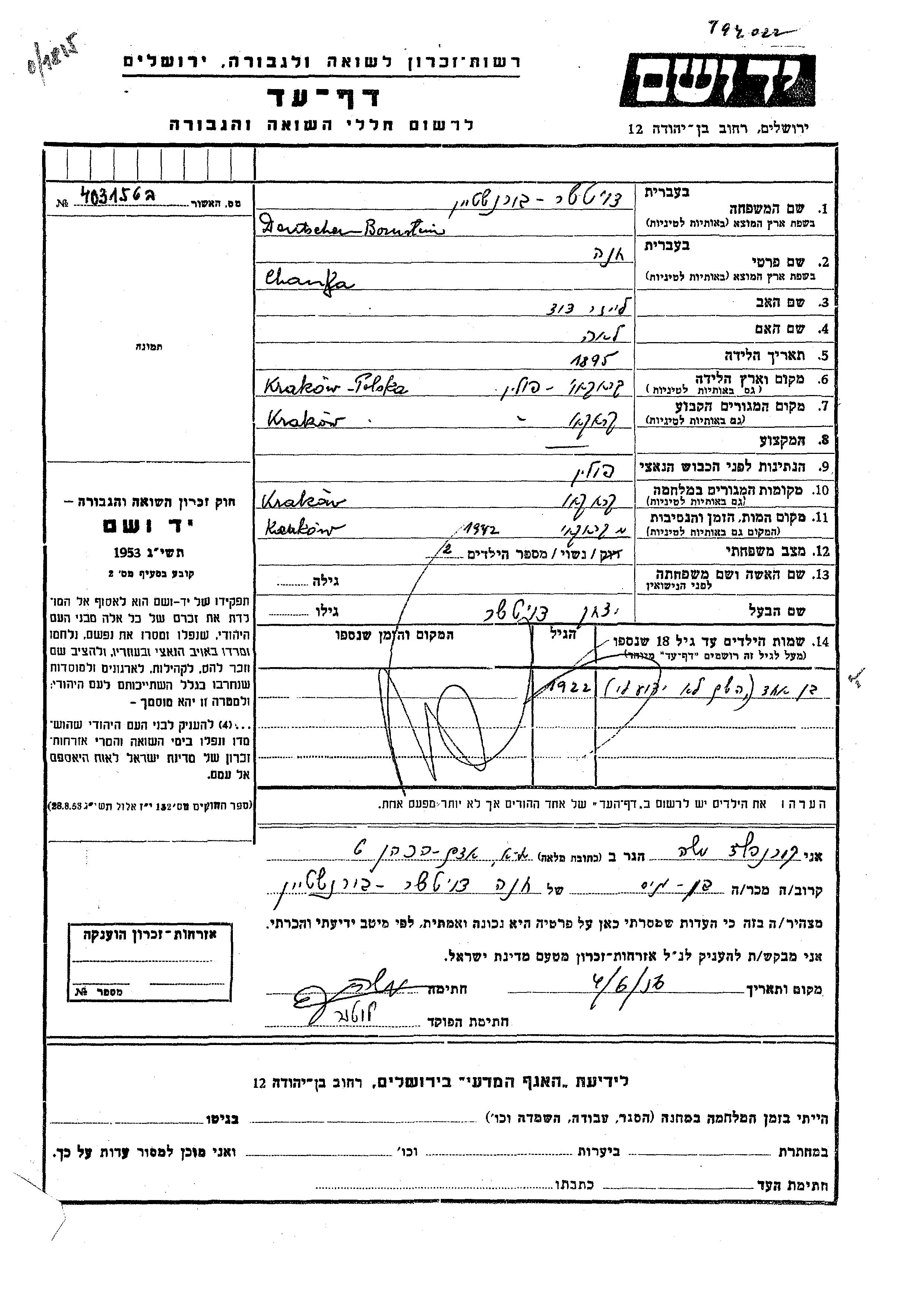Recherche par nom du dépositeur de la Feuille de témoignage. Cette recherché indique aussi les noms de jeunes filles.