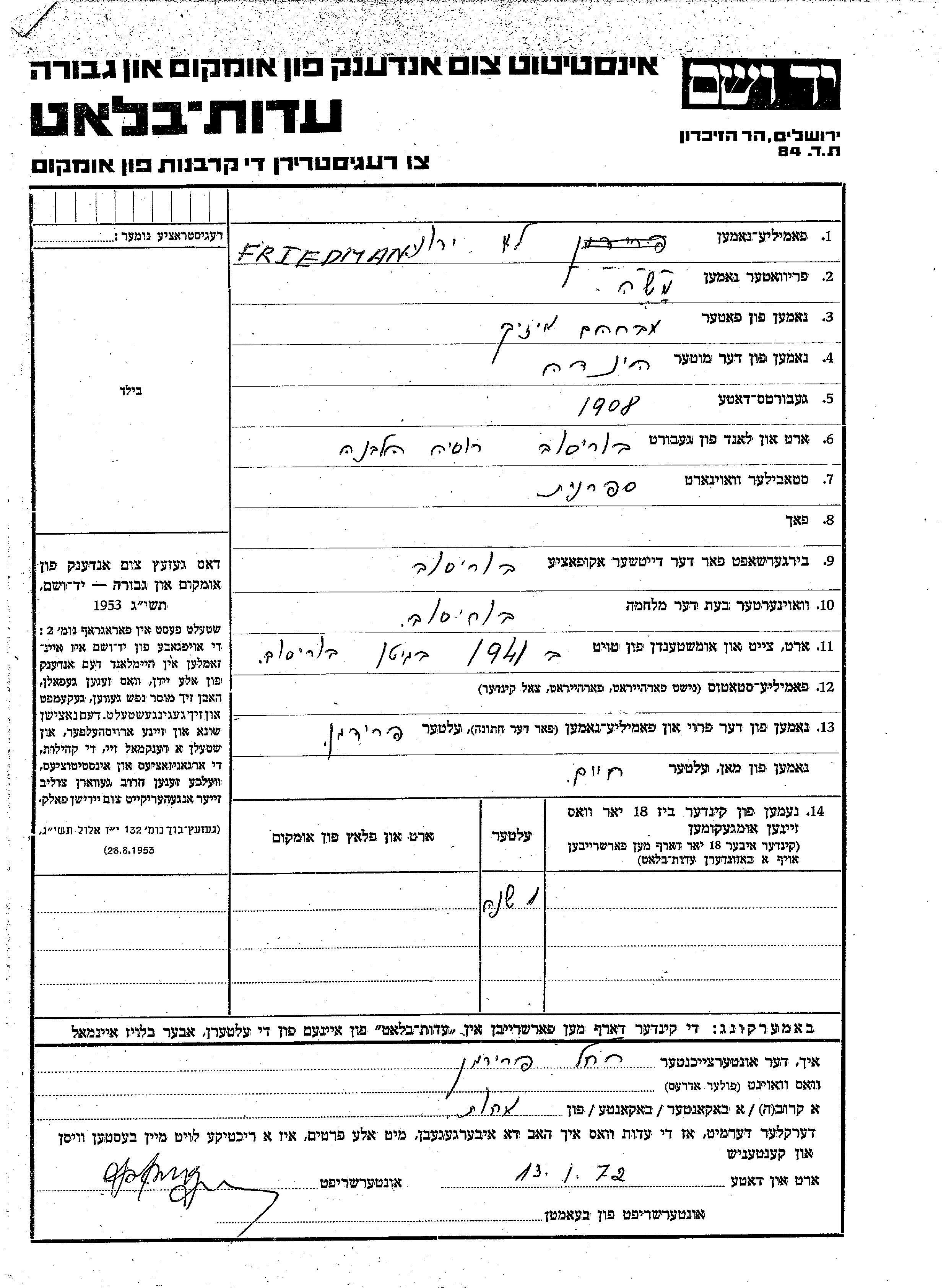 Yad Vashem - Pages of Testimony Names Memorial Collection