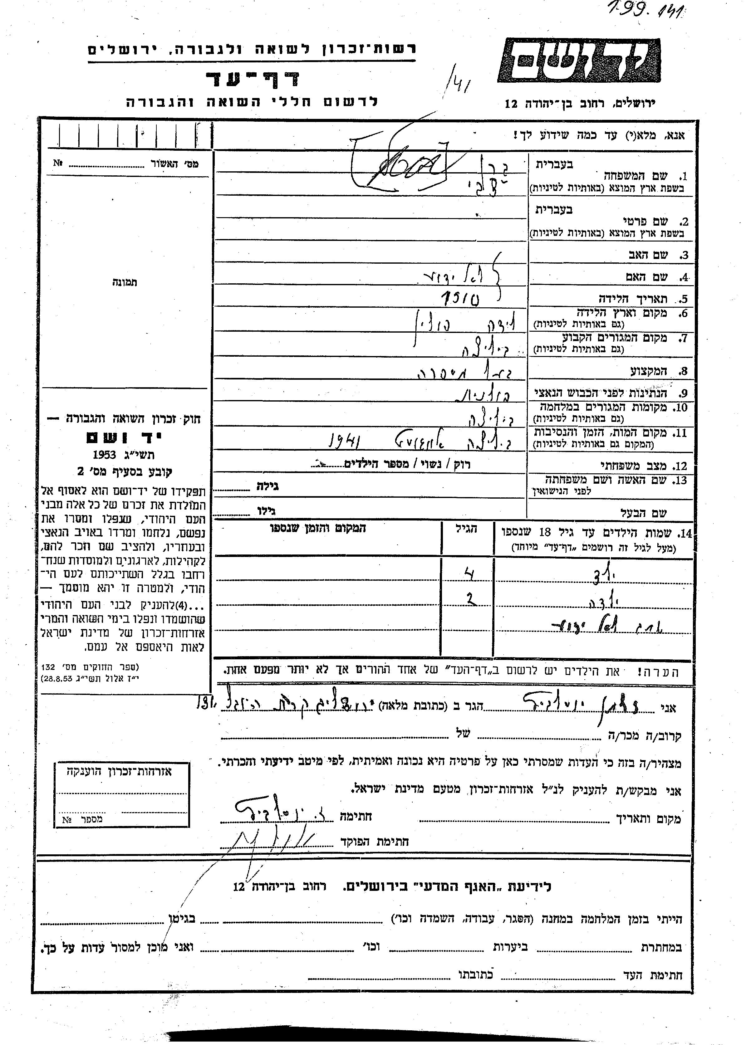 Yad Vashem - Pages of Testimony Names Memorial Collection