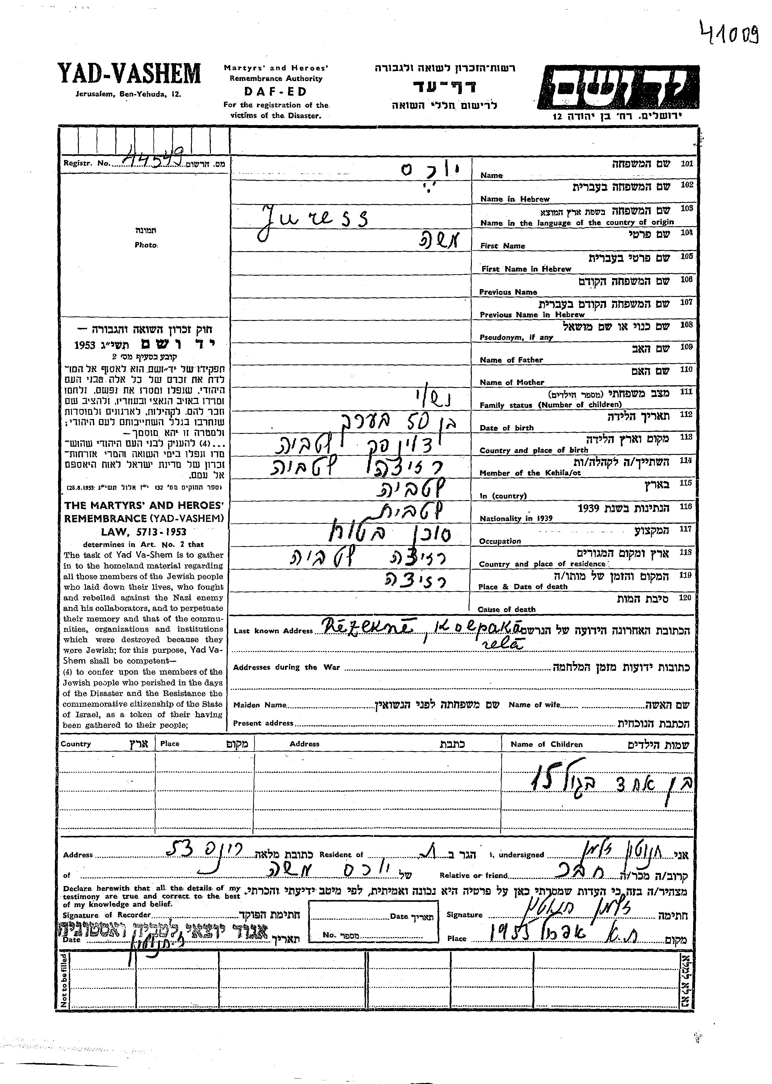 Yad Vashem - Pages of Testimony Names Memorial Collection