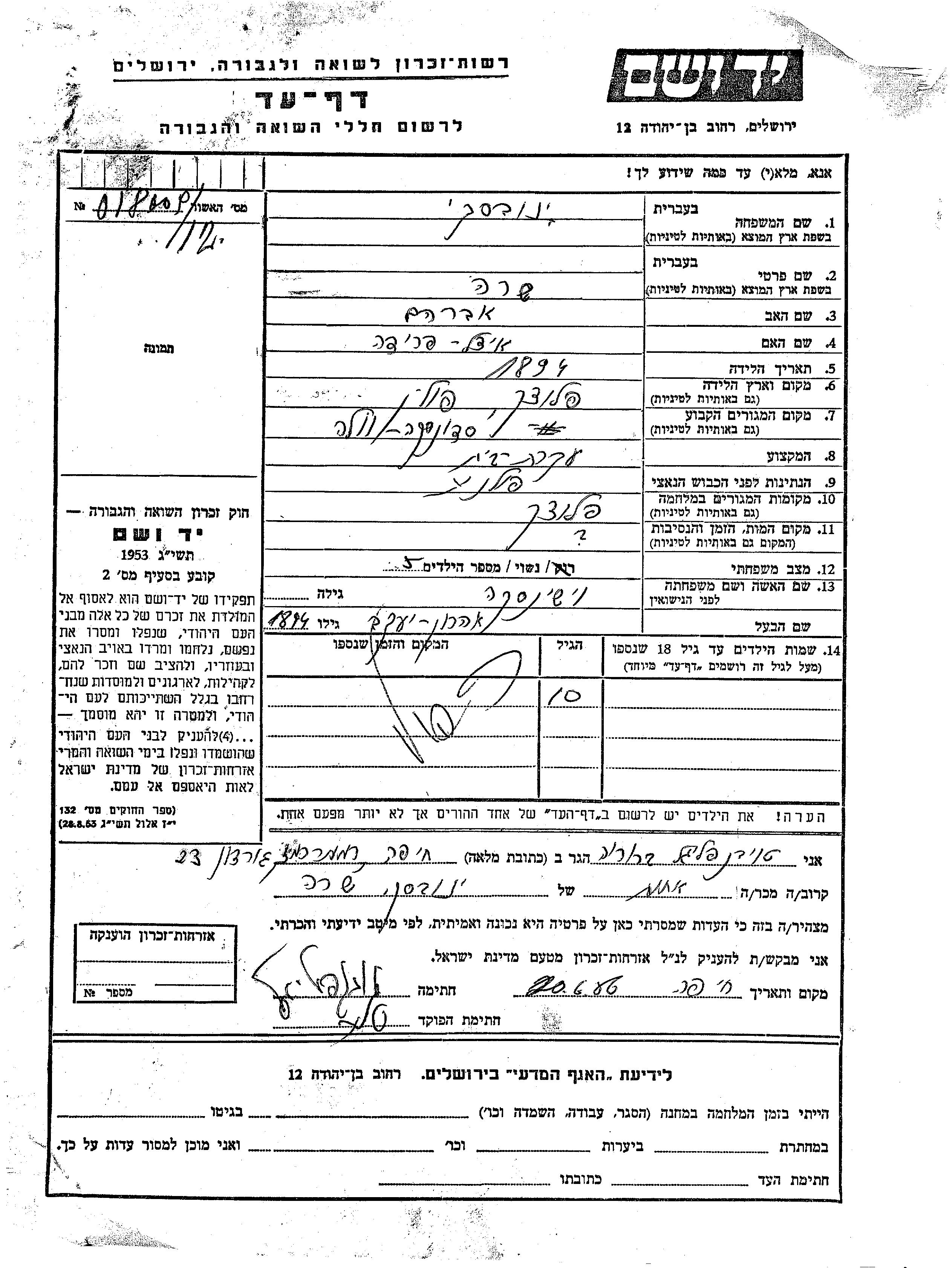 Yad Vashem - Pages of Testimony Names Memorial Collection