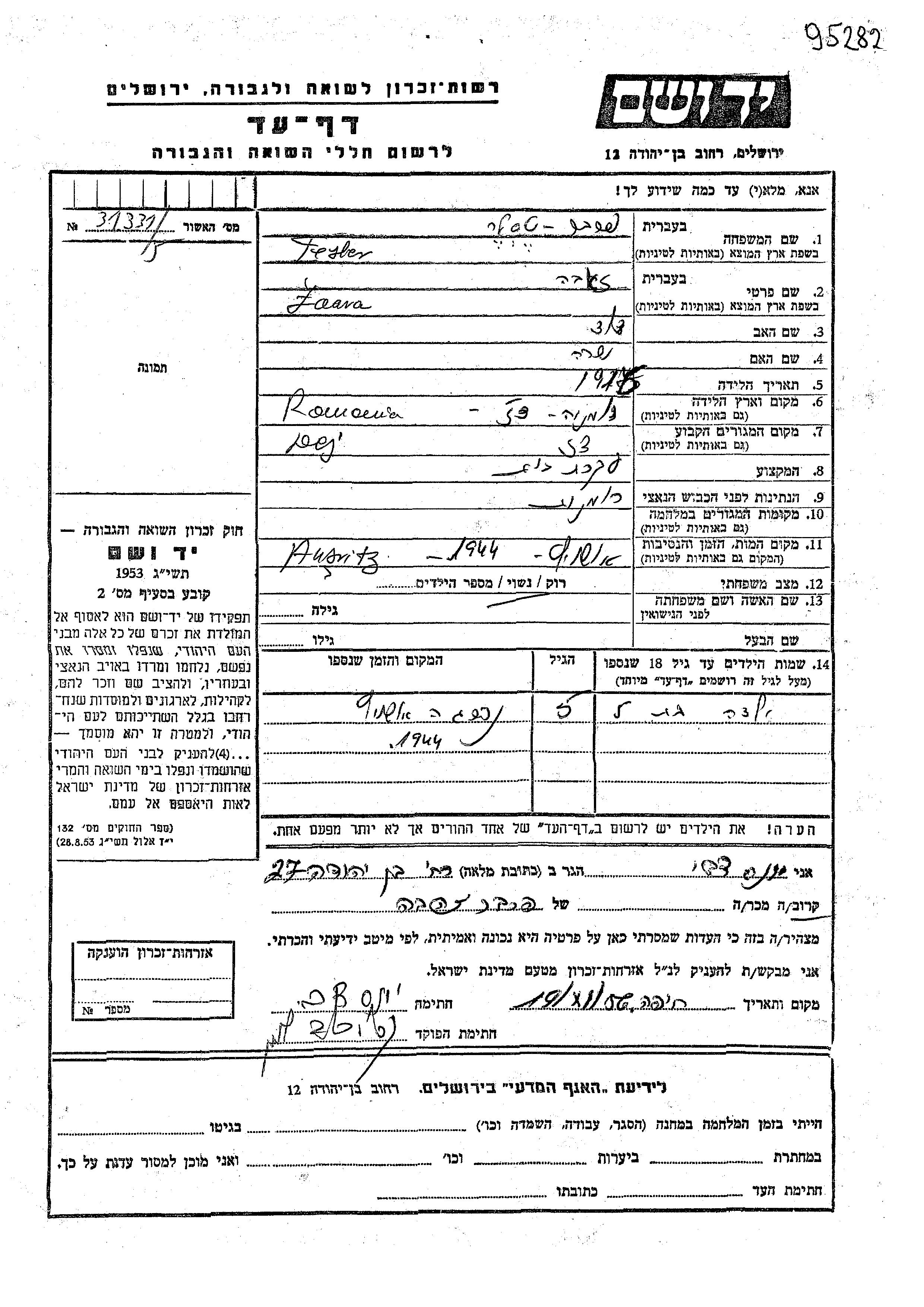 Yad Vashem - Pages of Testimony Names Memorial Collection