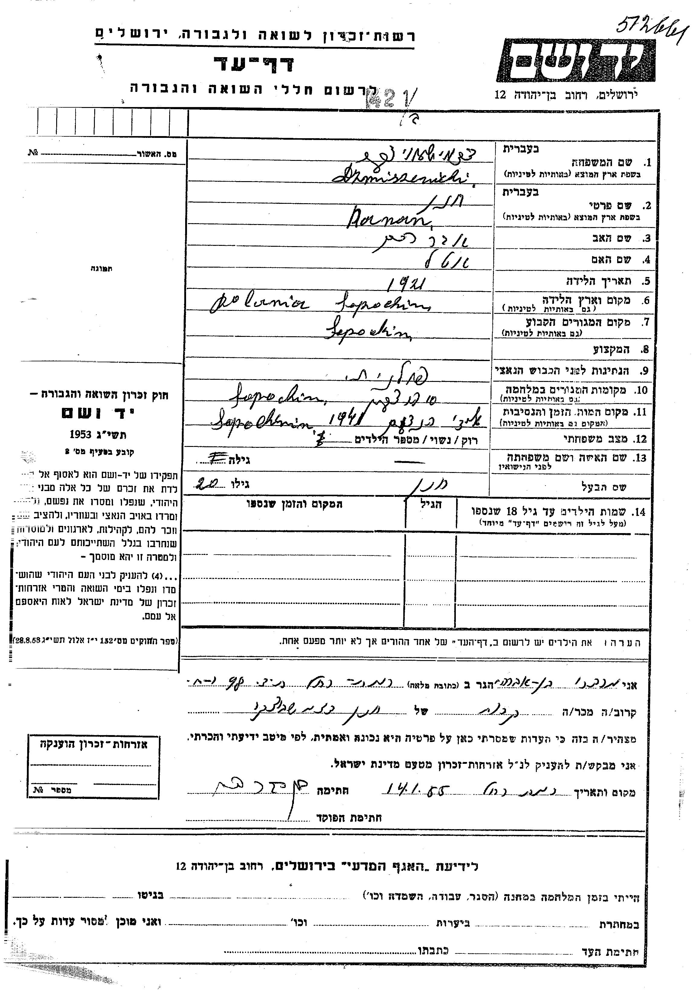 Yad Vashem - Pages of Testimony Names Memorial Collection