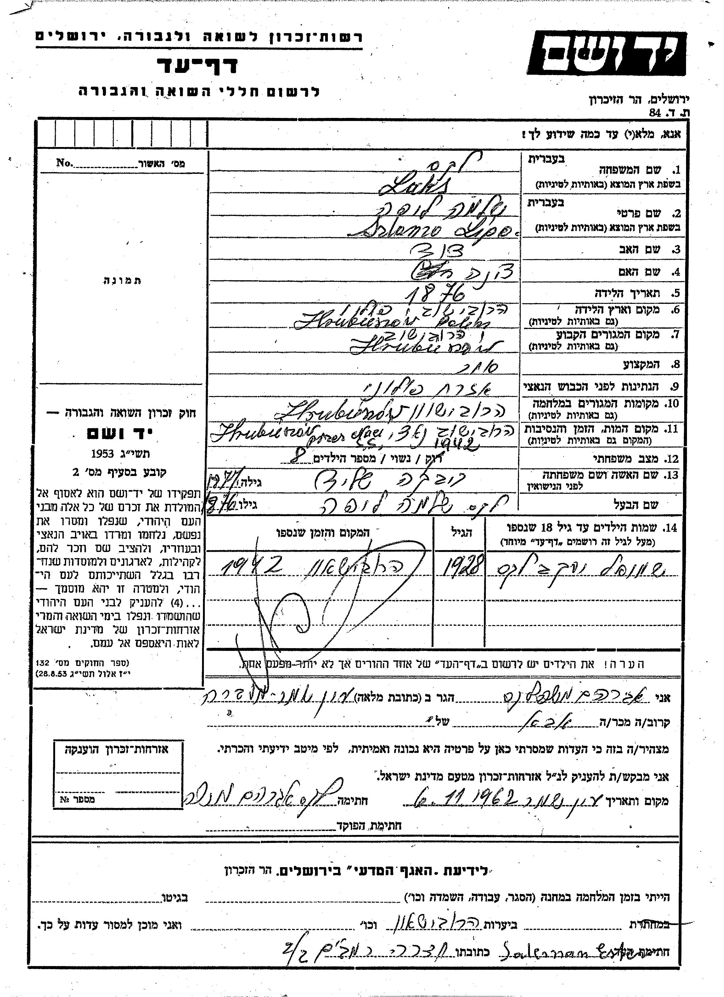 Yad Vashem - Pages of Testimony Names Memorial Collection