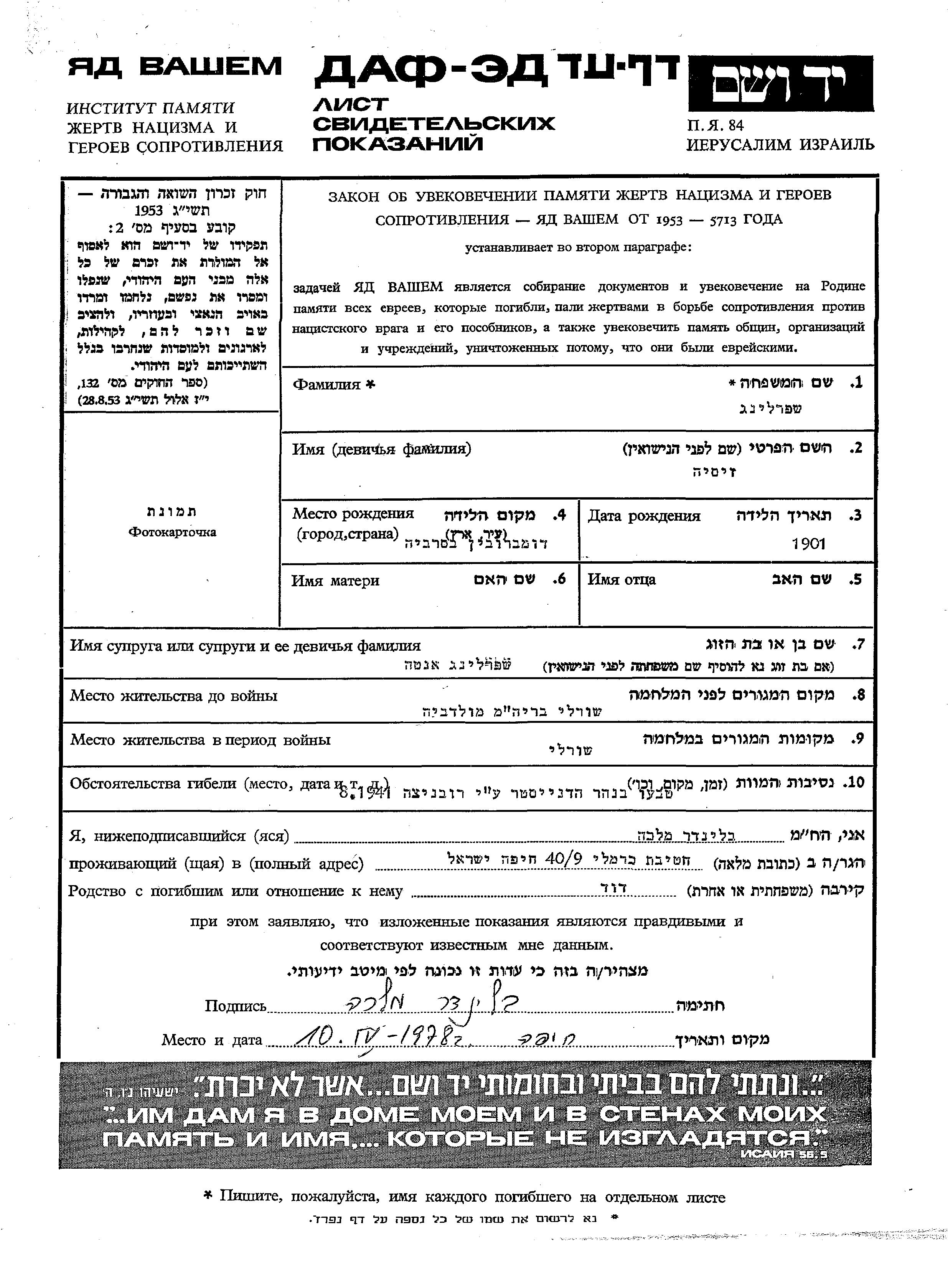 Yad Vashem - Pages of Testimony Names Memorial Collection