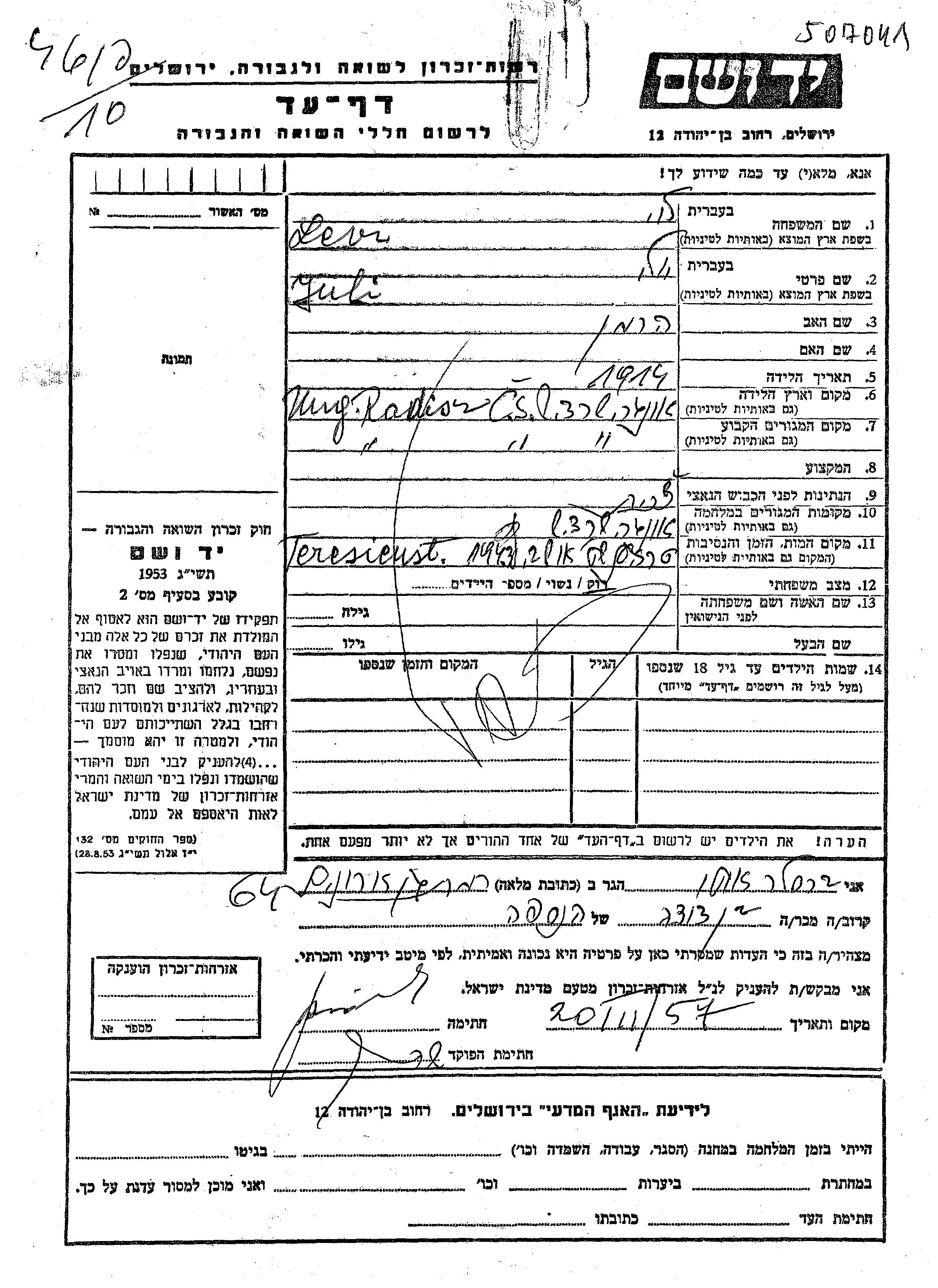 Yad Vashem - Pages of Testimony Names Memorial Collection
