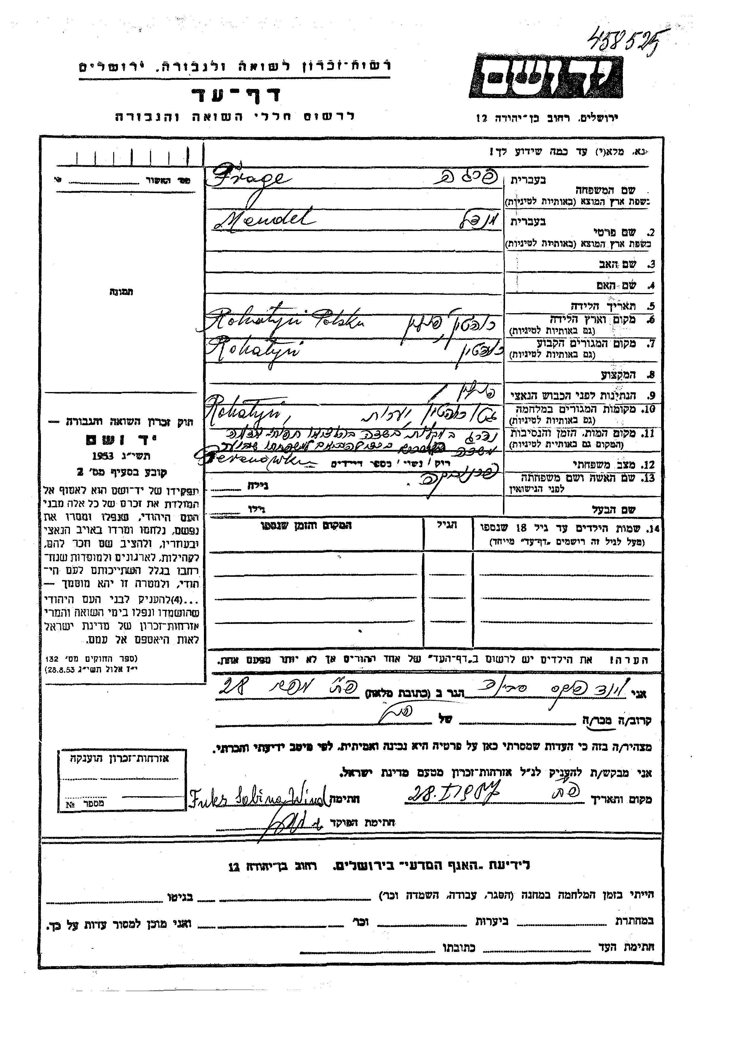 Frage Praga Mendel Rohatin, Pologne Feuille de témoignage