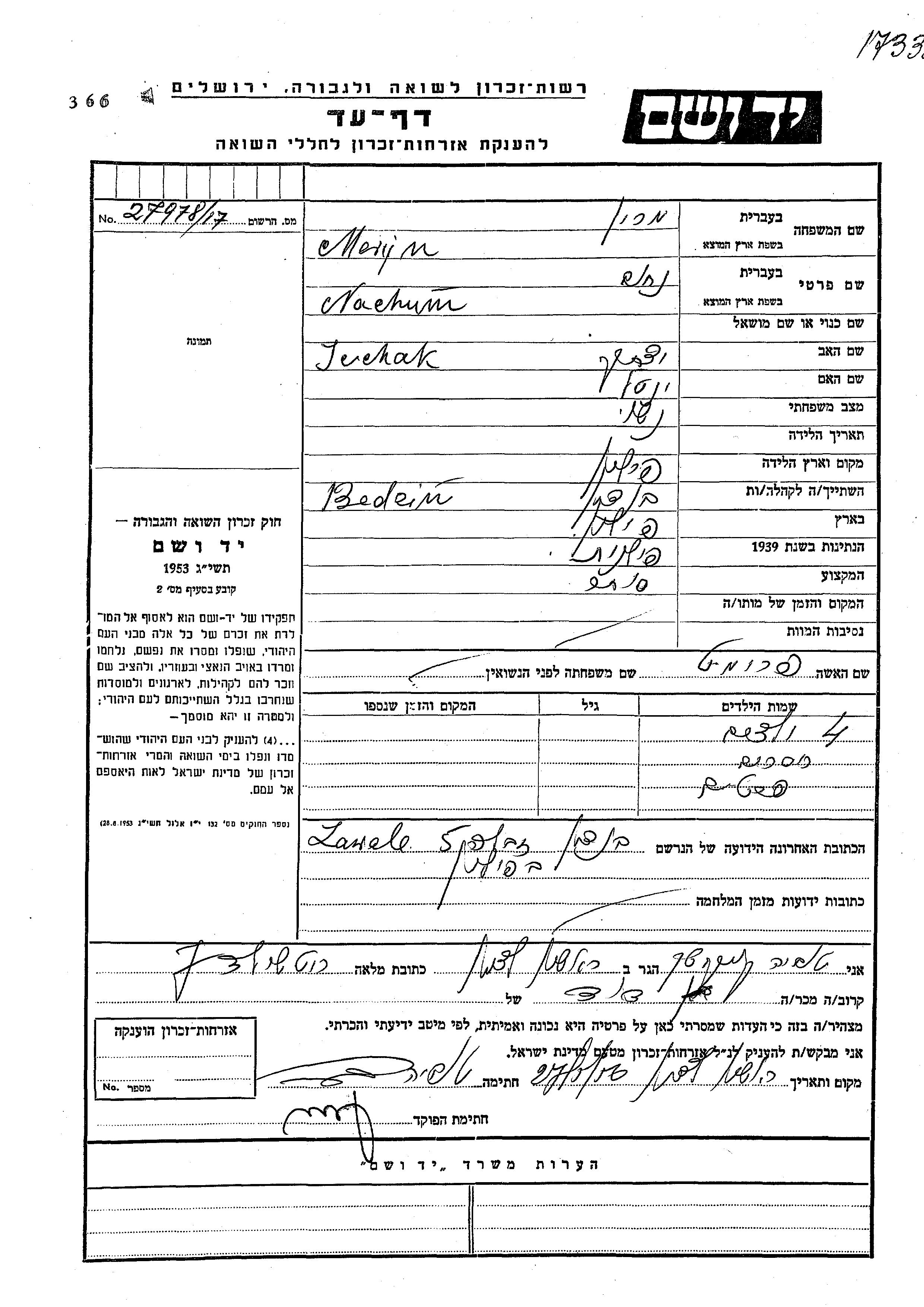 Yad Vashem - Pages of Testimony Names Memorial Collection