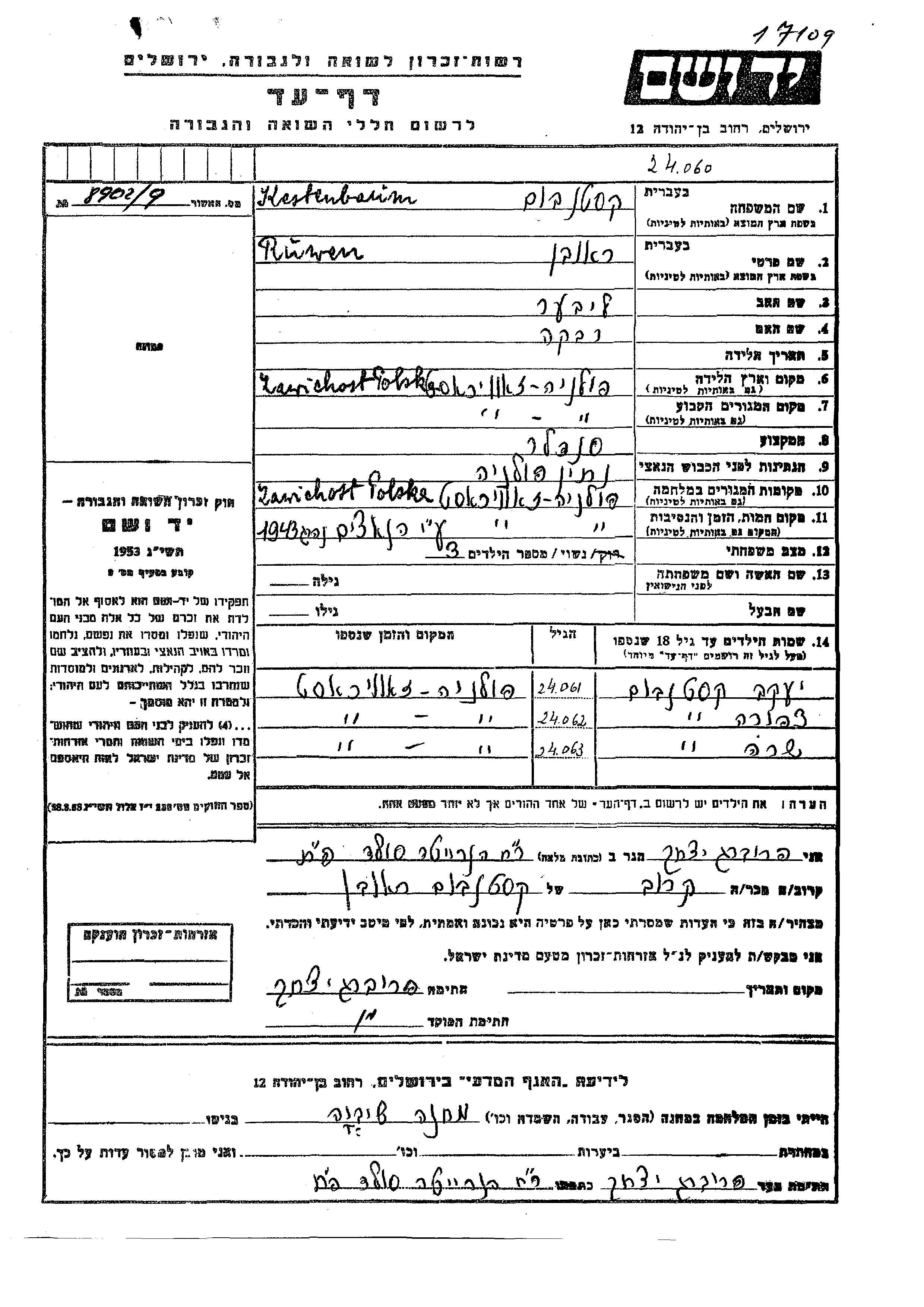 Yad Vashem - Pages of Testimony Names Memorial Collection