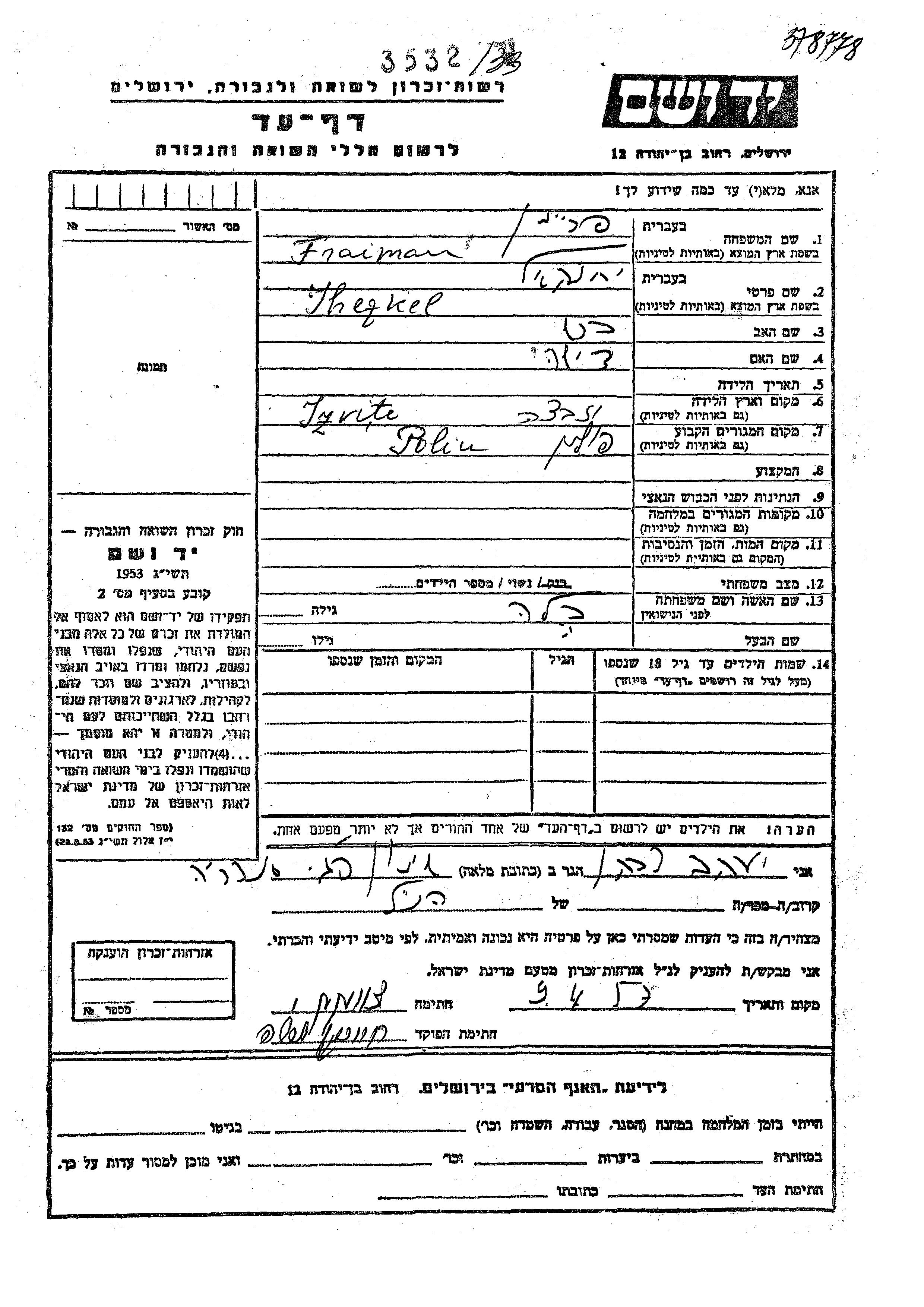 Fraiman Ihezkel Pologne Feuille de témoignage
