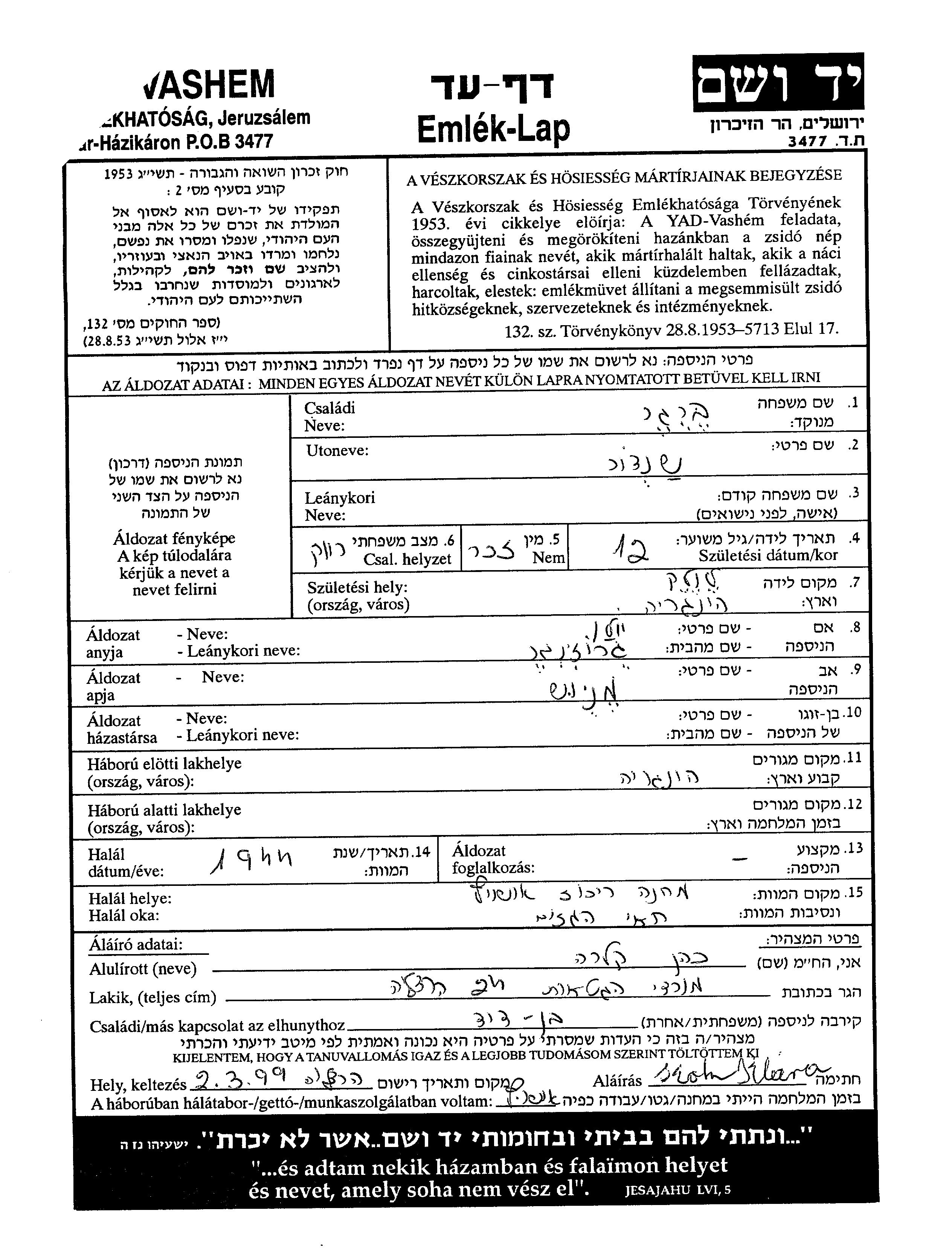 Yad Vashem - Pages of Testimony Names Memorial Collection
