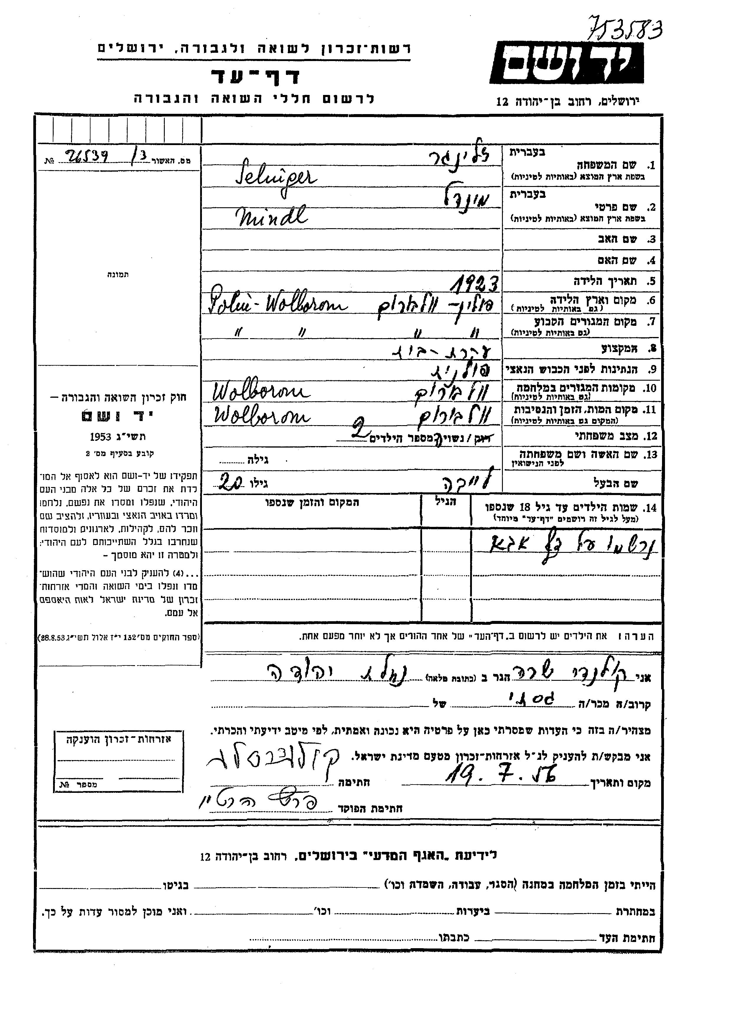 Recherche par nom du dépositeur de la Feuille de témoignage. Cette recherché indique aussi les noms de jeunes filles.