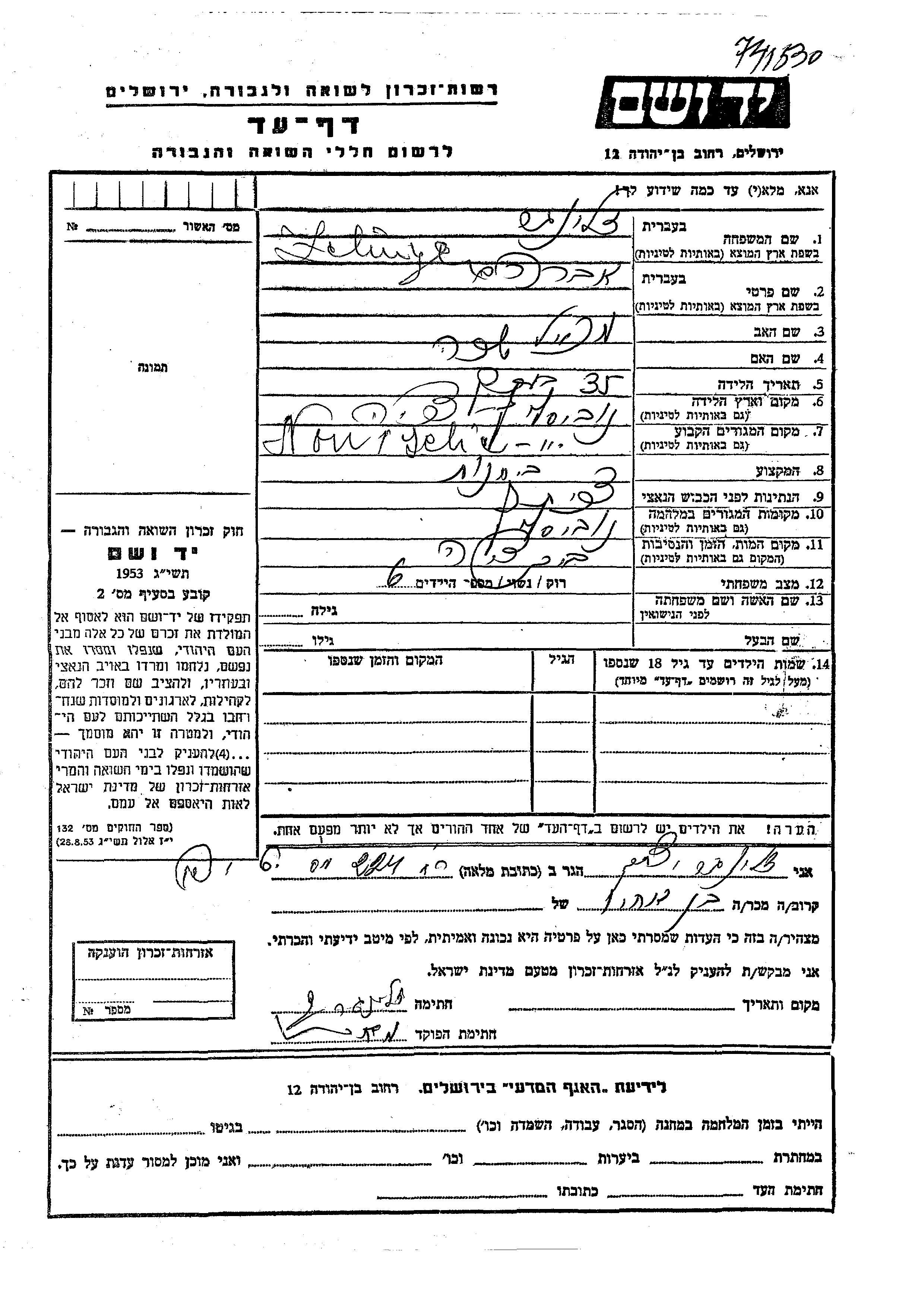 Yad Vashem - Pages of Testimony Names Memorial Collection